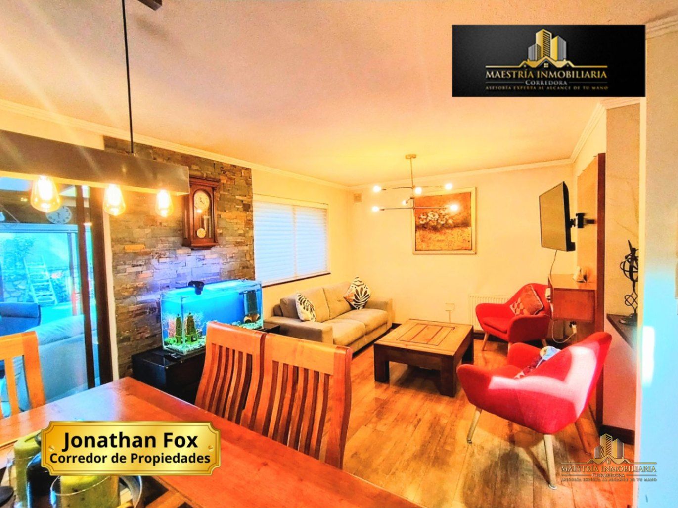 Amplio y luminoso living-comedor, diseñado para ofrecer un ambiente cálido y acogedor. El espacio integra cómodamente el área de estar y comedor, con piso Flotante que aporta elegancia y calidez., creando un gran espacio social perfecto para reuniones familiares y celebraciones.