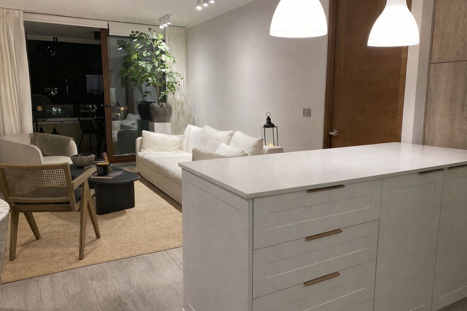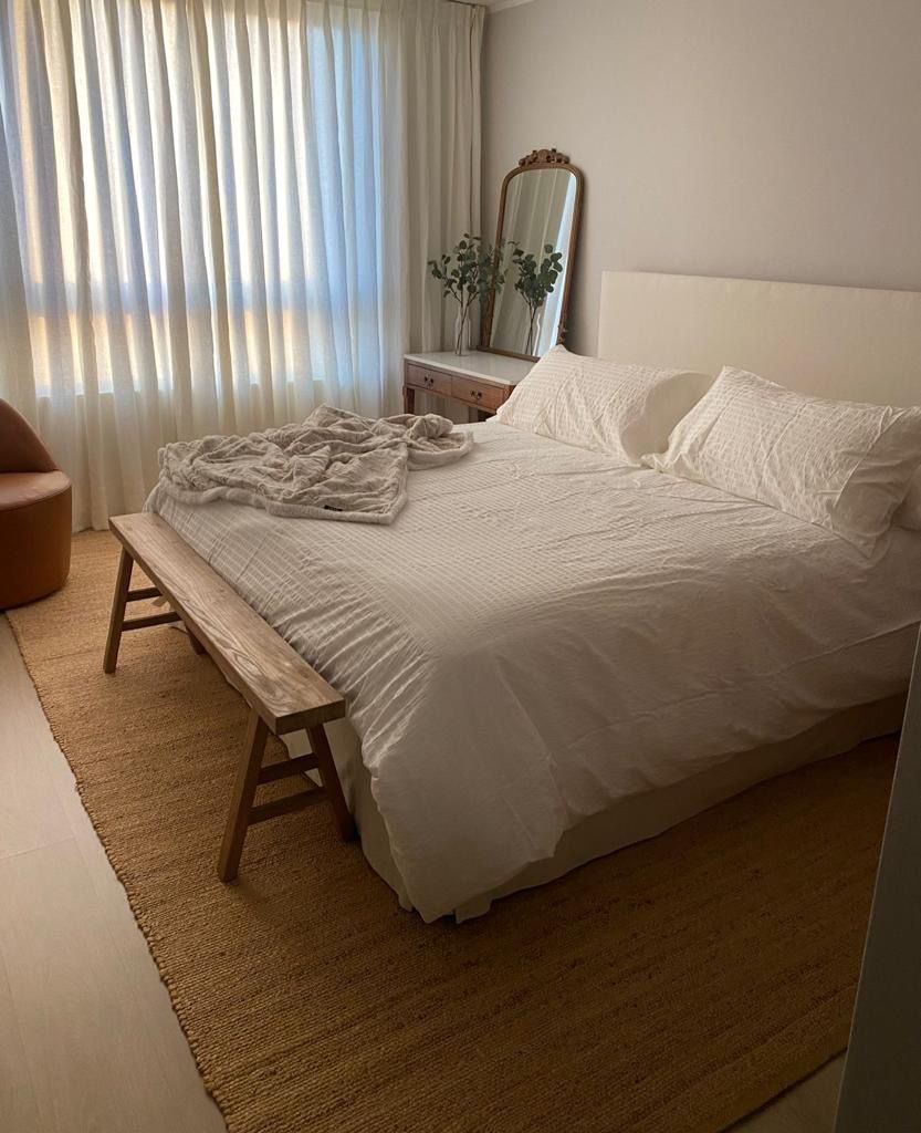 Remodelaciones y mejoras – Cocina remodelada con reubicación del horno y microondas para permitir la incorporación de una isla central, aumentando superficie de trabajo, almacenamiento y amplitud del espacio. – Muebles de cocina optimizados: mejorando funcionalidad y capacidad de guardado. – Enchufe del living reubicado, permitiendo instalación de TV sin cables visibles, logrando una estética más limpia y ordenada. – Modificaciones únicas en el edificio, no presentes en otras unidades, que mejoran la distribución y la percepción de amplitud del departamento. Equipamiento – Ventanas termopanel – Conexión a lavadora – Calefacción: Radiador – Estacionamiento: 1 (muy amplio entre pilares) – Bodega: Si