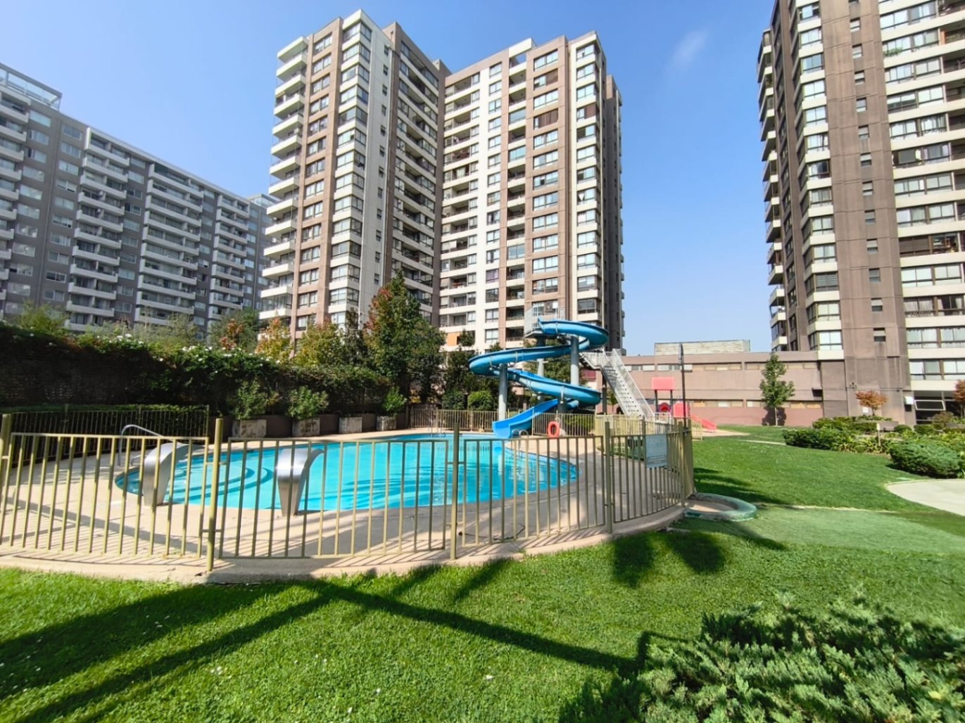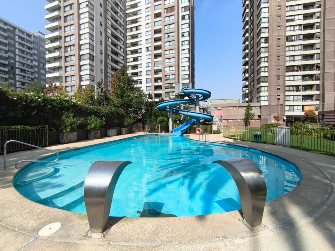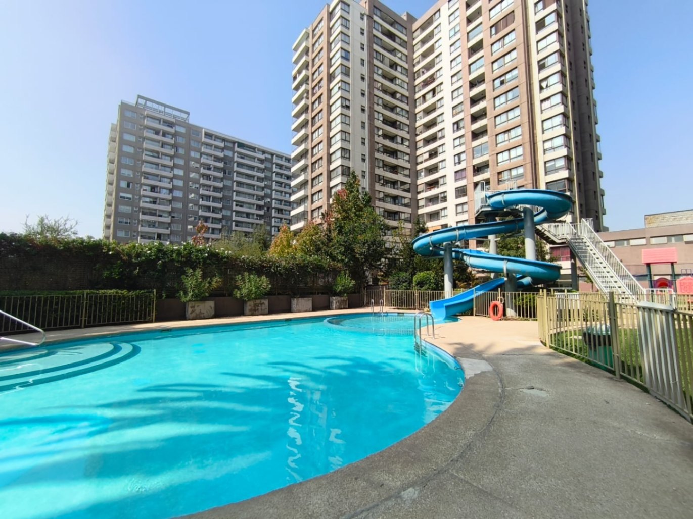 El departamento se complementa con un estacionamiento cubierto y una bodega, ambos ubicados juntos, lo que añade comodidad a su uso diario. El condominio tiene piscina con tobogán, gimnasio, sala de eventos y quinchos.