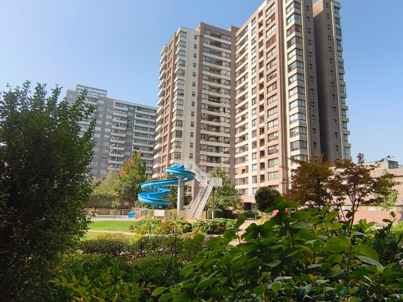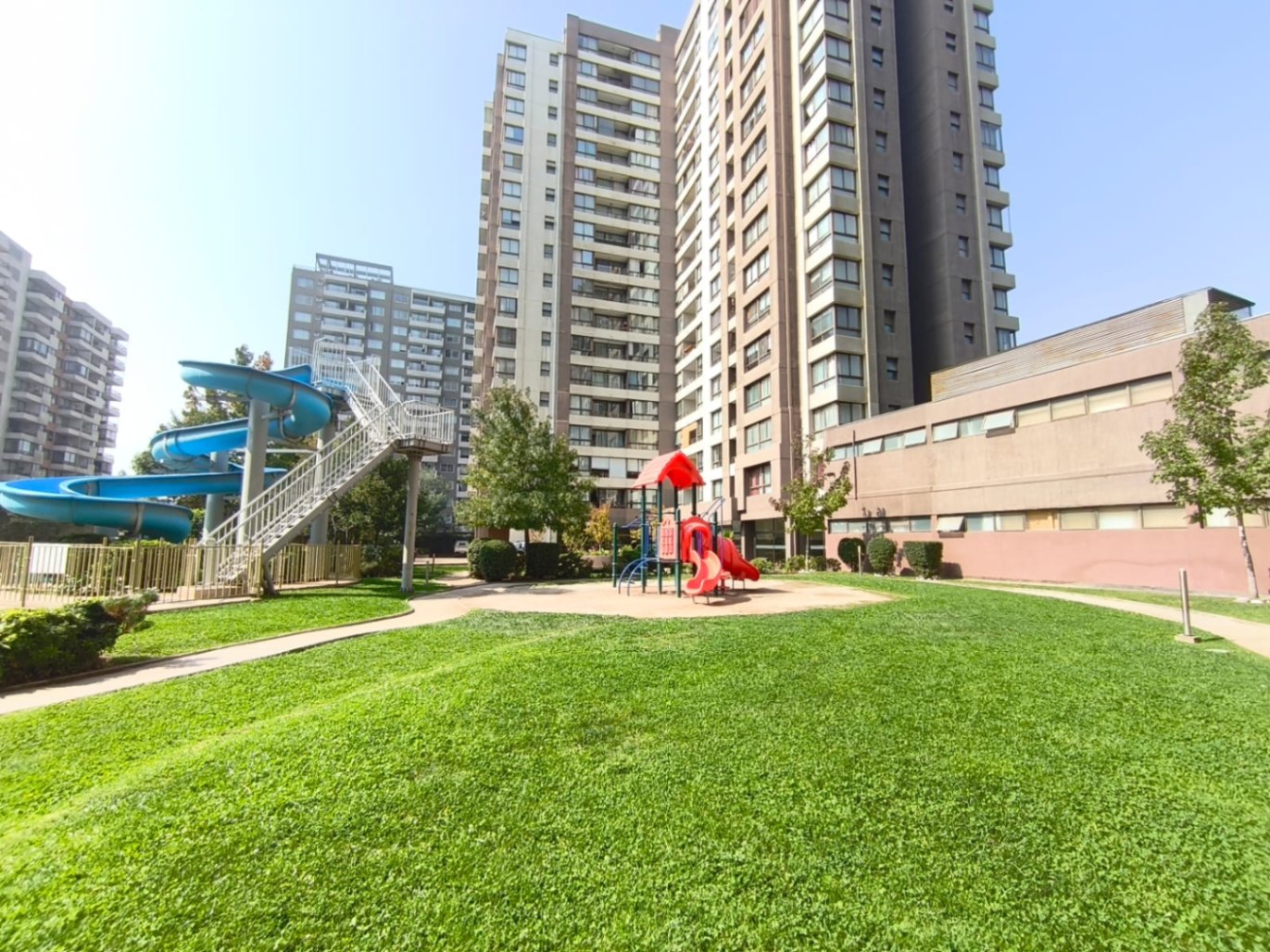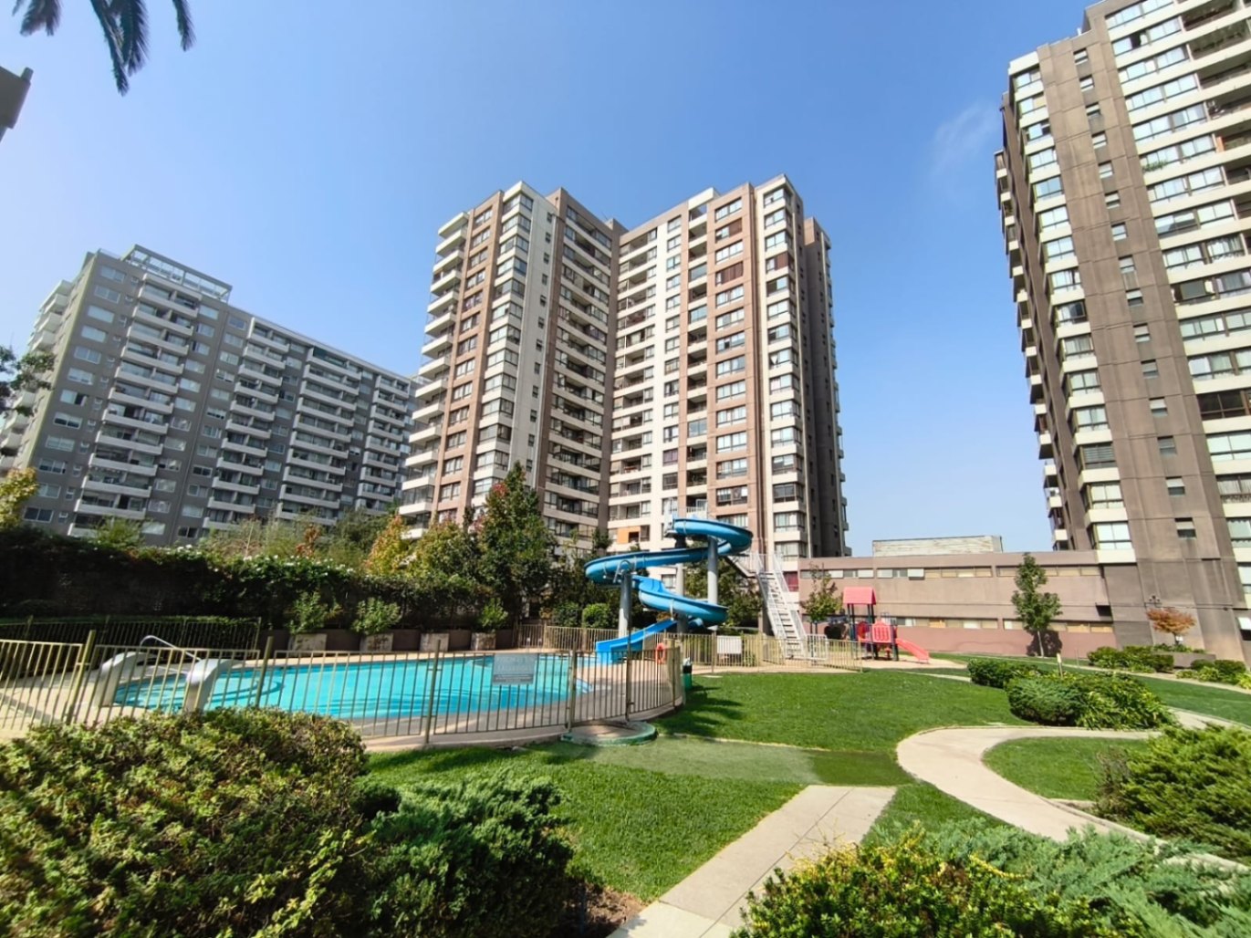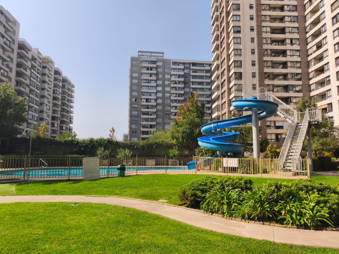 El departamento se complementa con un estacionamiento cubierto y una bodega, ambos ubicados juntos, lo que añade comodidad a su uso diario. El condominio tiene piscina con tobogán, gimnasio, sala de eventos y quinchos.