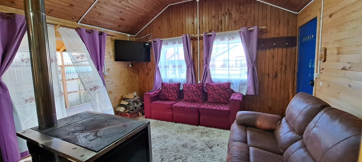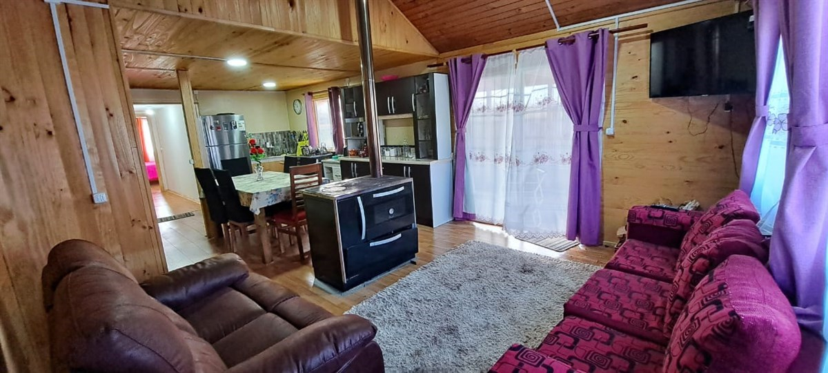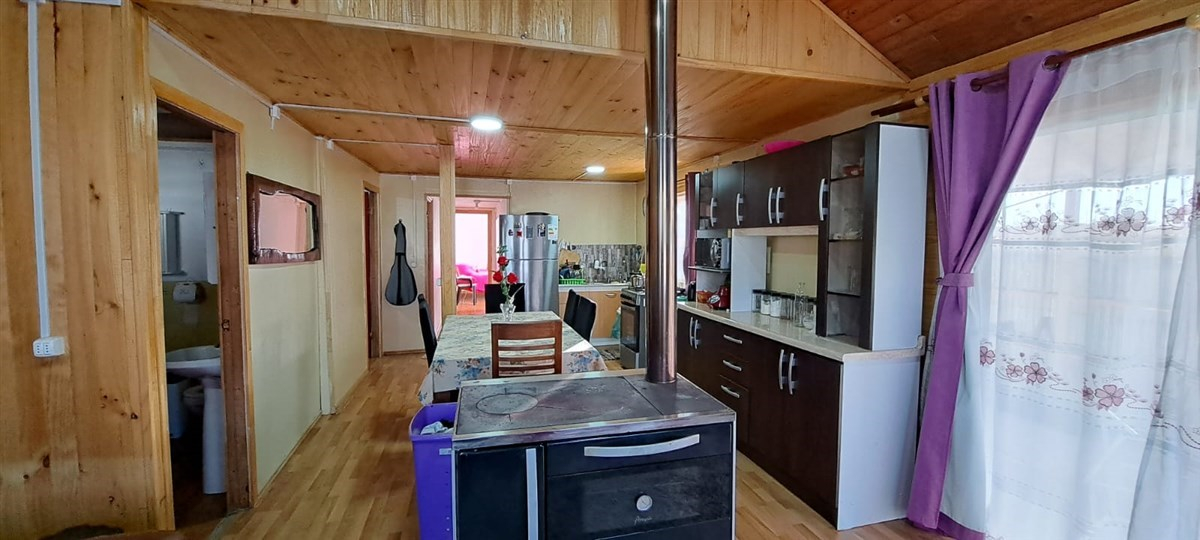 – Living comedor con una cocina central a leña, en la cual se puede cocinar y otorga calefacción en invierno.