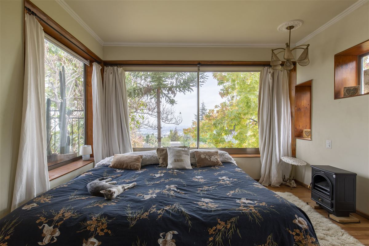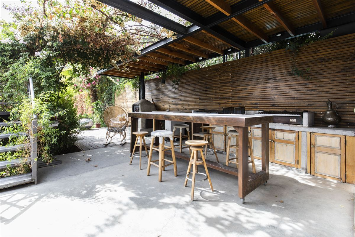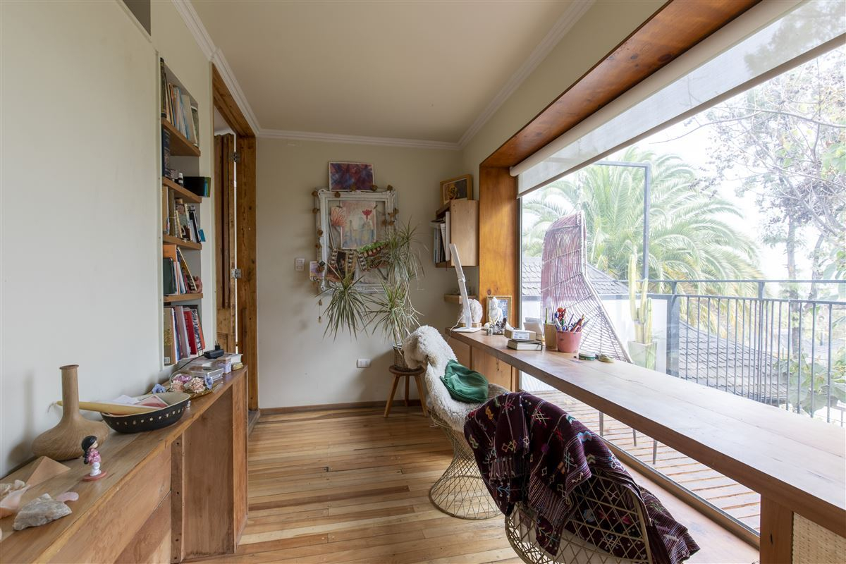 En el segundo piso el dormitorio principal en suite con vestidor de cómodos y funcionales clóset. Escritorio y terraza privada. Exhuberantes vistas al jardin y la cordillera. Pasarela al quincho y patio.