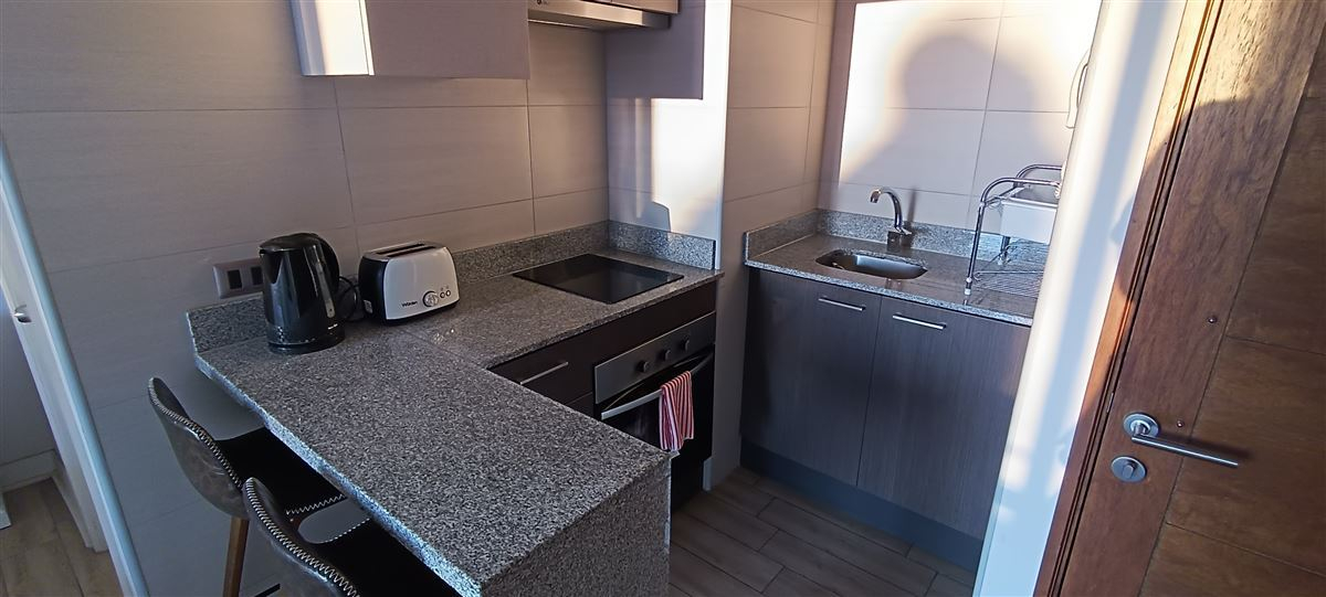 El departamento general se divide en dos departamentos tipo Studio, ambos de mismas características, muy cómodos, acogedores y modernos, con cocina americana full equipada, todo eléctrico, baño completo full equipado, 2 closets cómodos, linda terraza con orientación poniente y vista a la ciudad.