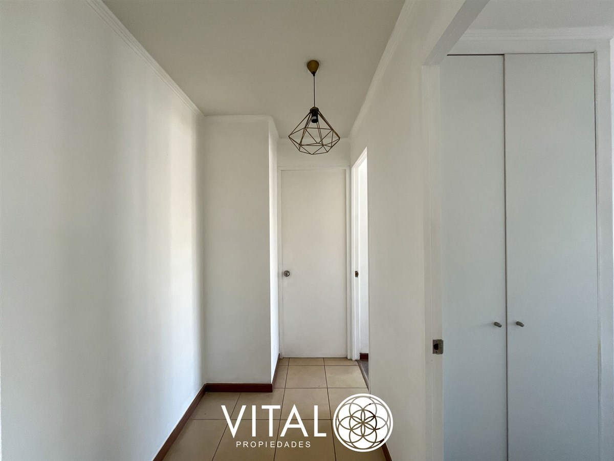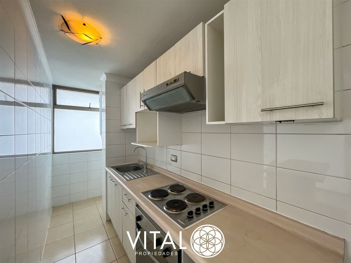 Se vende cómodo departamento de 2 dormitorios y 1 baño a pasos de metro Toesca, posee dormitorio principal y secundario con closet, cocina equipada con cocina encimera a gas, campana, y horno empotrado eléctrico, logia con lavadora y una amplia sala de estar con desayunador.