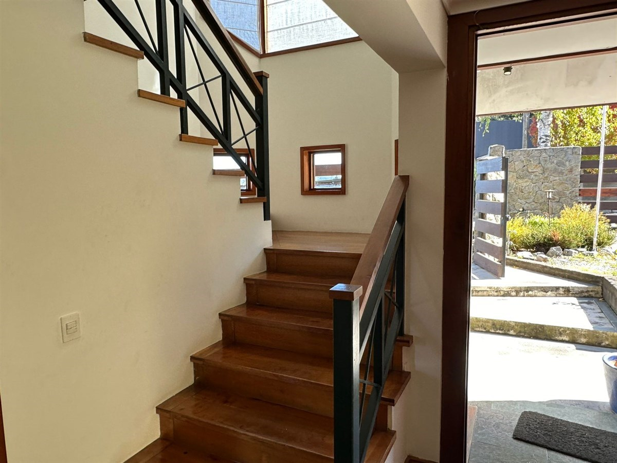 La orientación Nor-Oriente de la casa garantiza una excelente entrada de luz natural durante todo el día, creando un ambiente cálido y acogedor. El diseño tipo Chalet agrega un toque de encanto y calidez a la propiedad, mientras que el sistema de calefacción mediante caldera central asegura un ambiente confortable en todo momento.