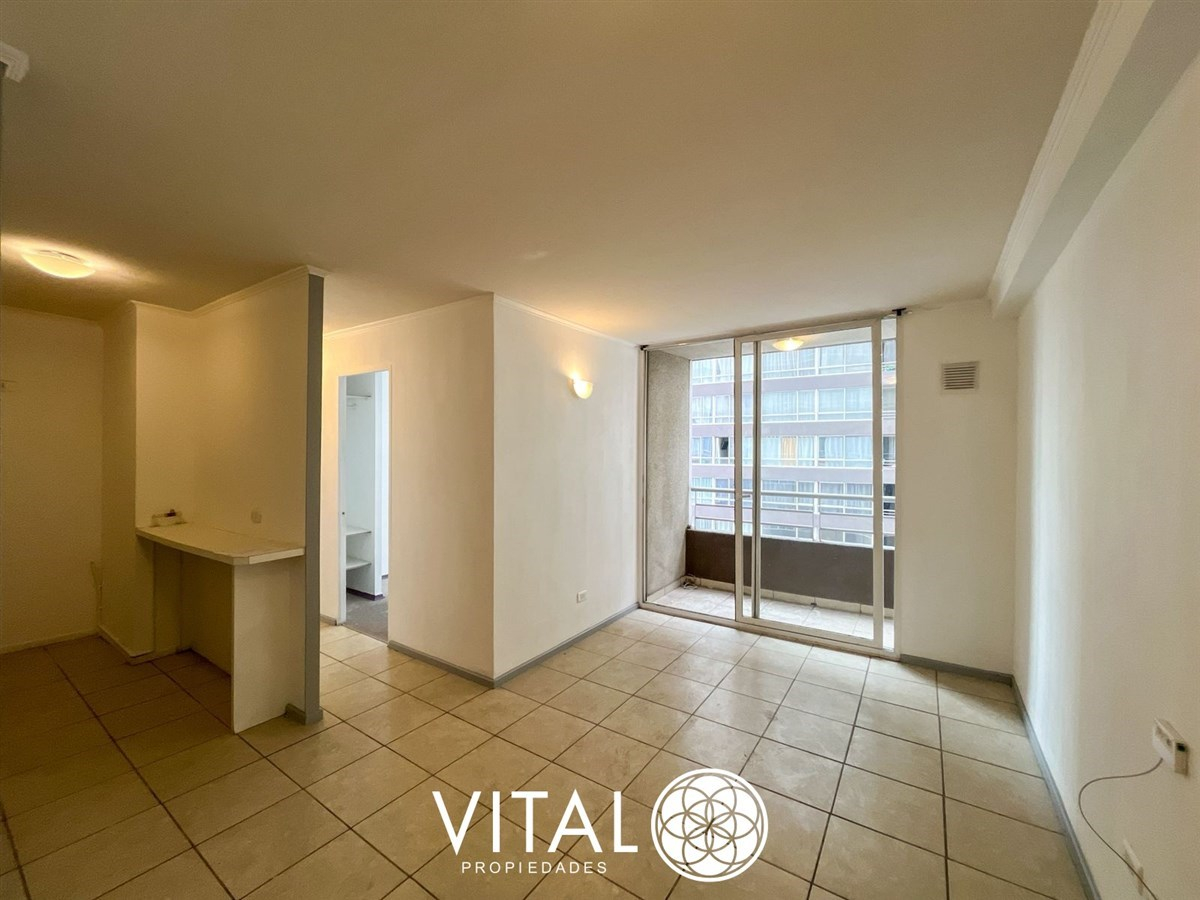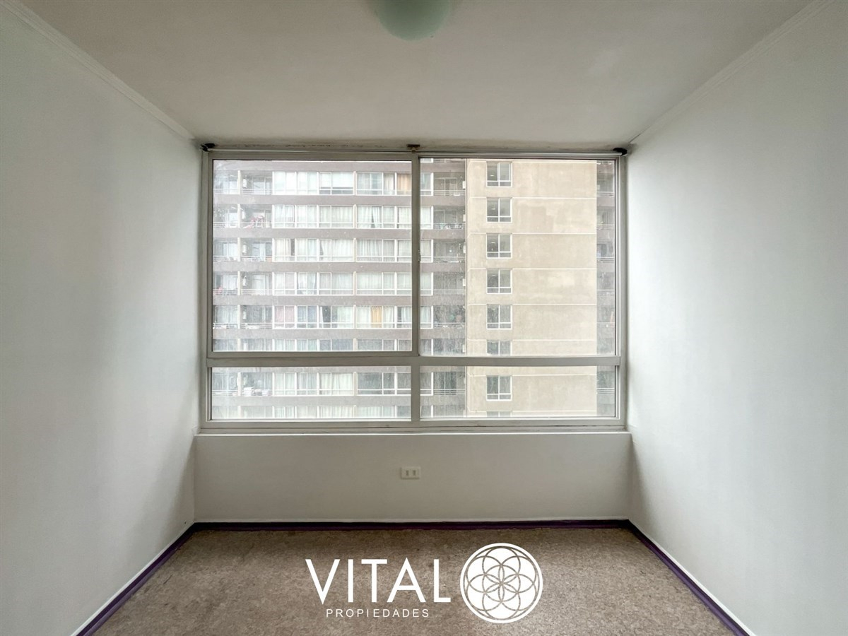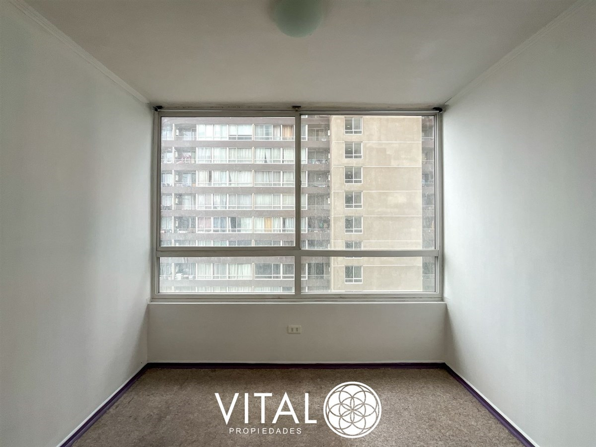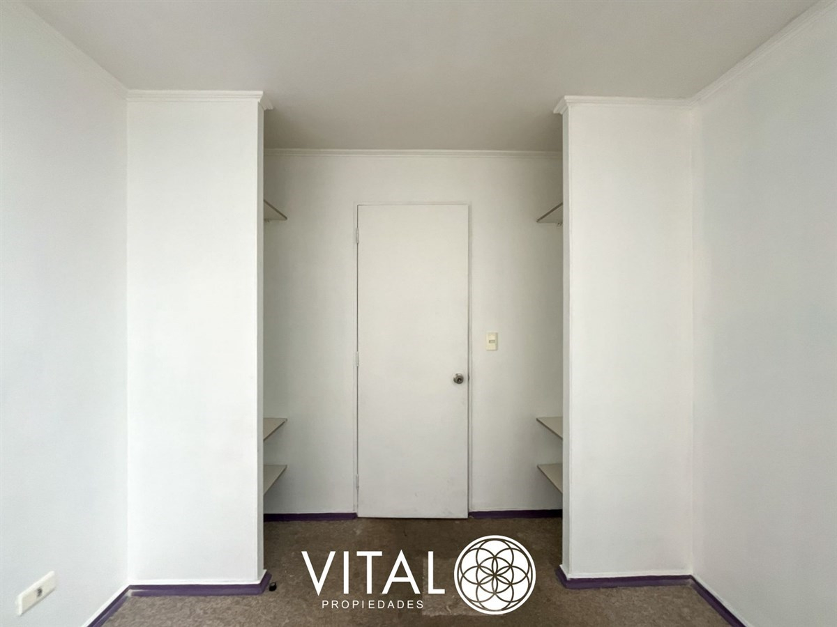 El departamento tiene una distribución práctica y funcional, con 2 dormitorios, 1 baño y una cocina equipada con muebles empotrados. El edificio cuenta con piscina, quinchos, juegos infantiles, sala de eventos y lavandería.