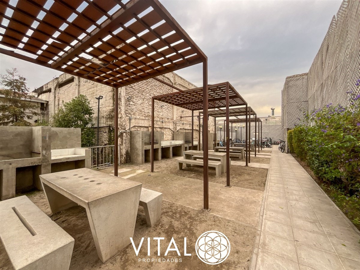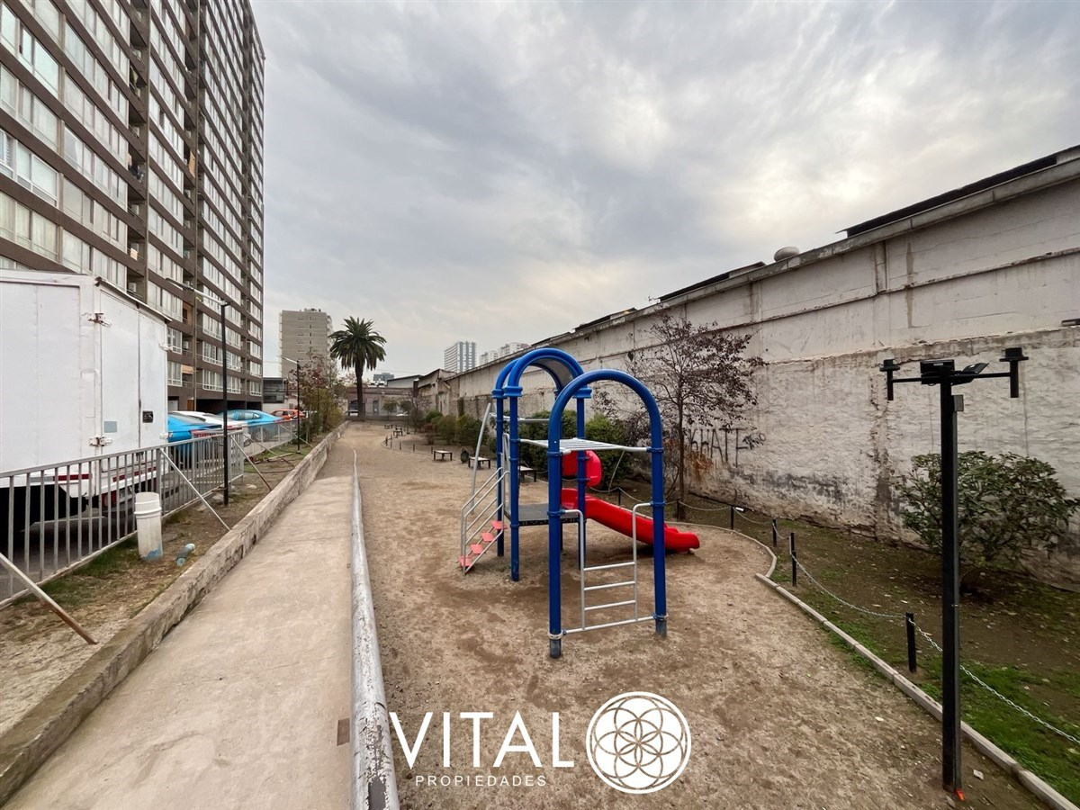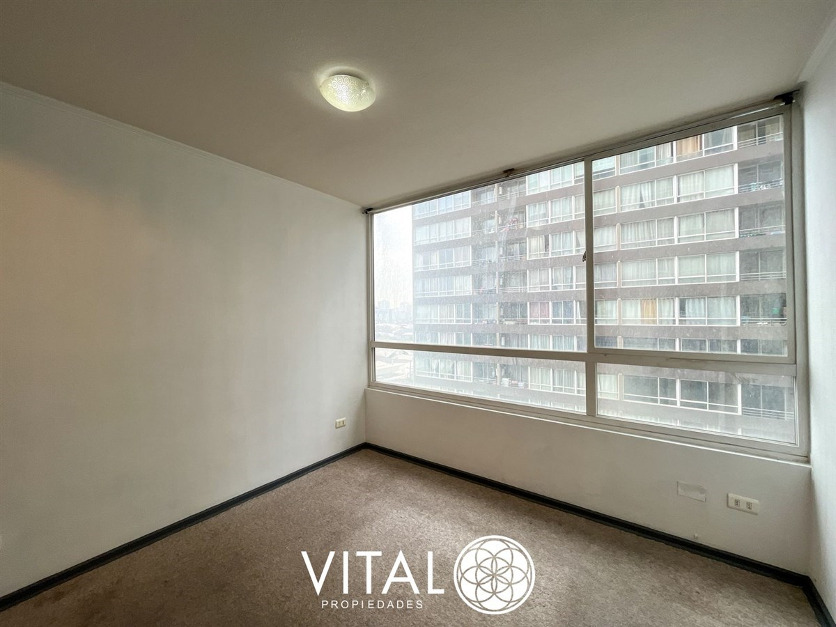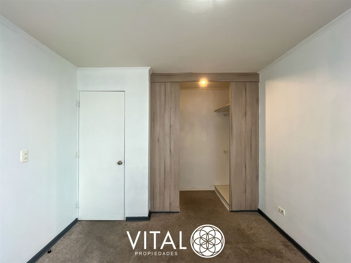 El departamento tiene una distribución práctica y funcional, con 2 dormitorios, 1 baño y una cocina equipada con muebles empotrados. El edificio cuenta con piscina, quinchos, juegos infantiles, sala de eventos y lavandería.