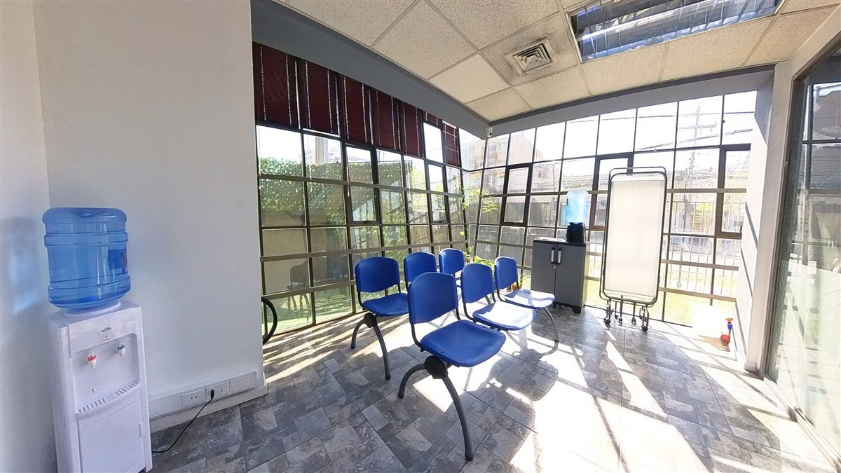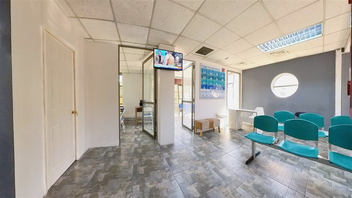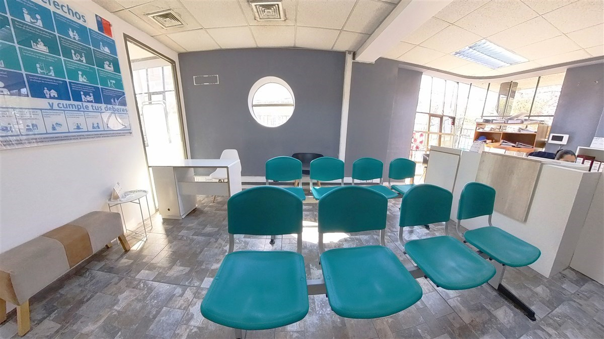 2 salas de espera, donde en la recepción principal pueden ingresar al menos 25 pacientes y en la segunda unos 12 pacientes (también puede ser otra oficina o consulta médica).