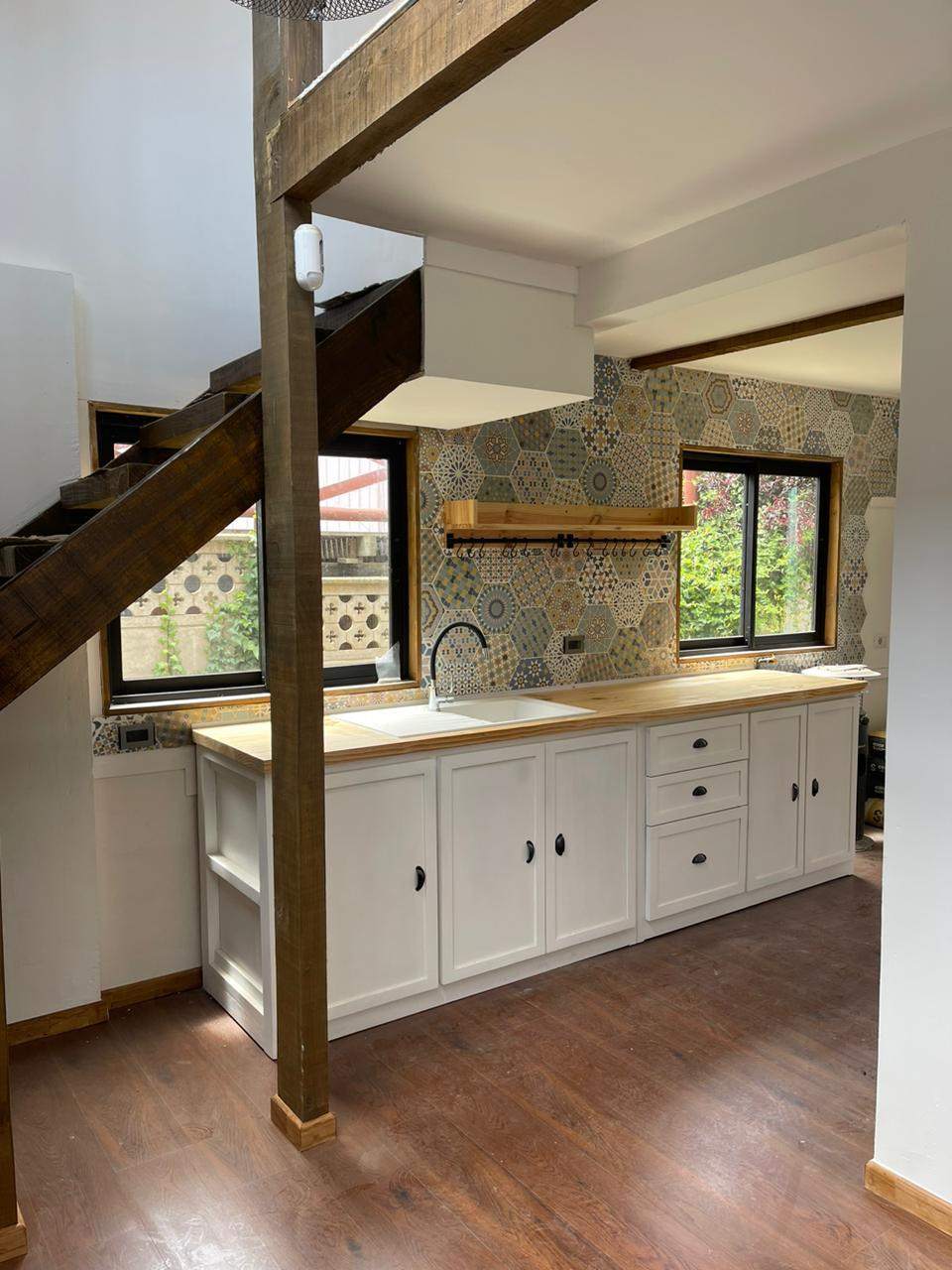 y Un baño con ventana. Cocina con espacios adecuados para ubicar muebles según su propio estilo, ideal para organizar la despensa y la ropa de casa.