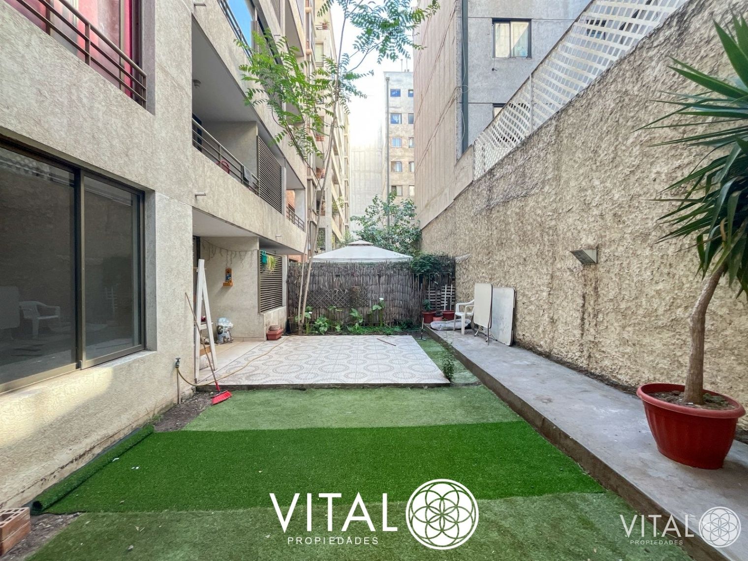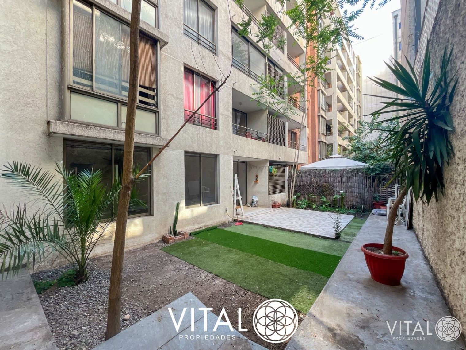 Uno de los principales atractivos de esta propiedad es su amplio patio, ideal para disfrutar de actividades al aire libre o para el esparcimiento familiar. El edificio, que cuenta con 15 años de antigüedad, ofrece comodidades como acceso controlado, salón de usos múltiples, gimnasio y áreas verdes. Además, el inmueble está diseñado para ser accesible, con rampas para silla de ruedas y la posibilidad de tener mascotas. Los gastos comunes son de CL$100.000, lo que permite mantener una administración eficiente de los espacios compartidos.