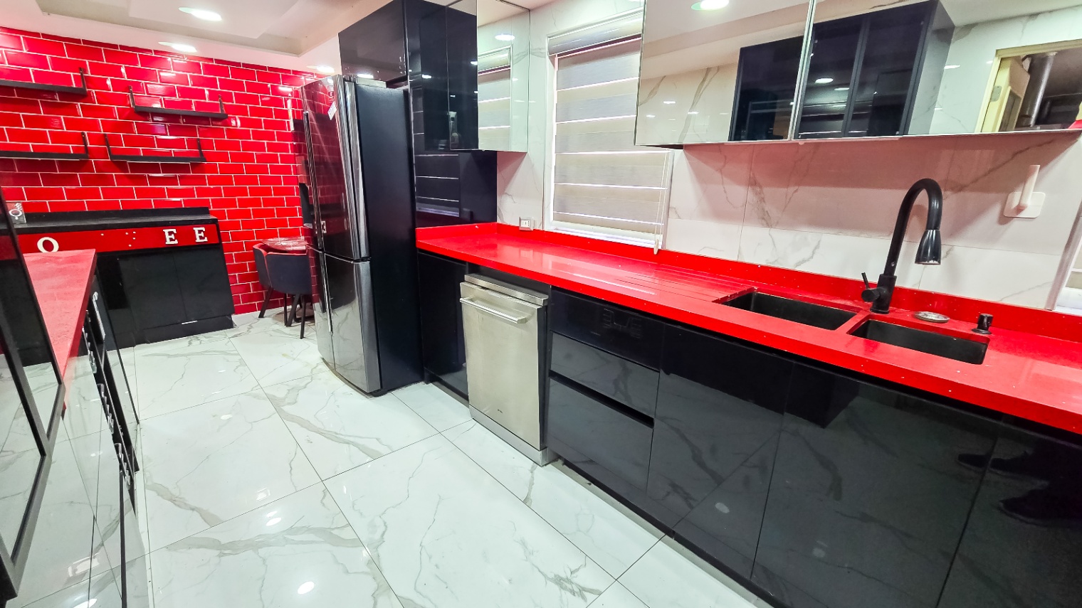 con refrigerador de 2 puertas, lavavajillas, frigobar muebles nevos con accesorios en acero inoxidable