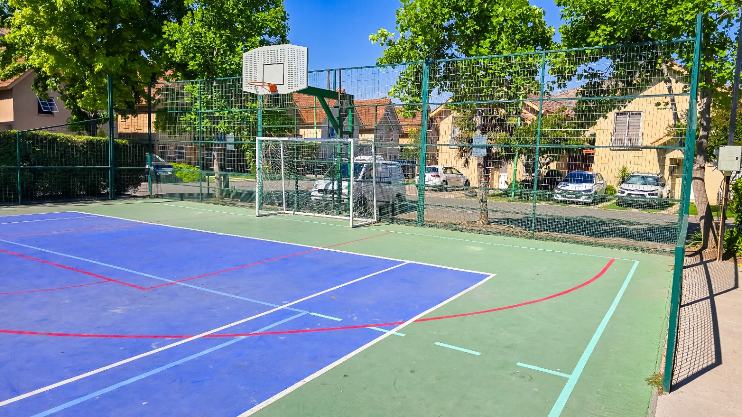 Área de juegos para niños y muchas áreas verdes, multi cancha