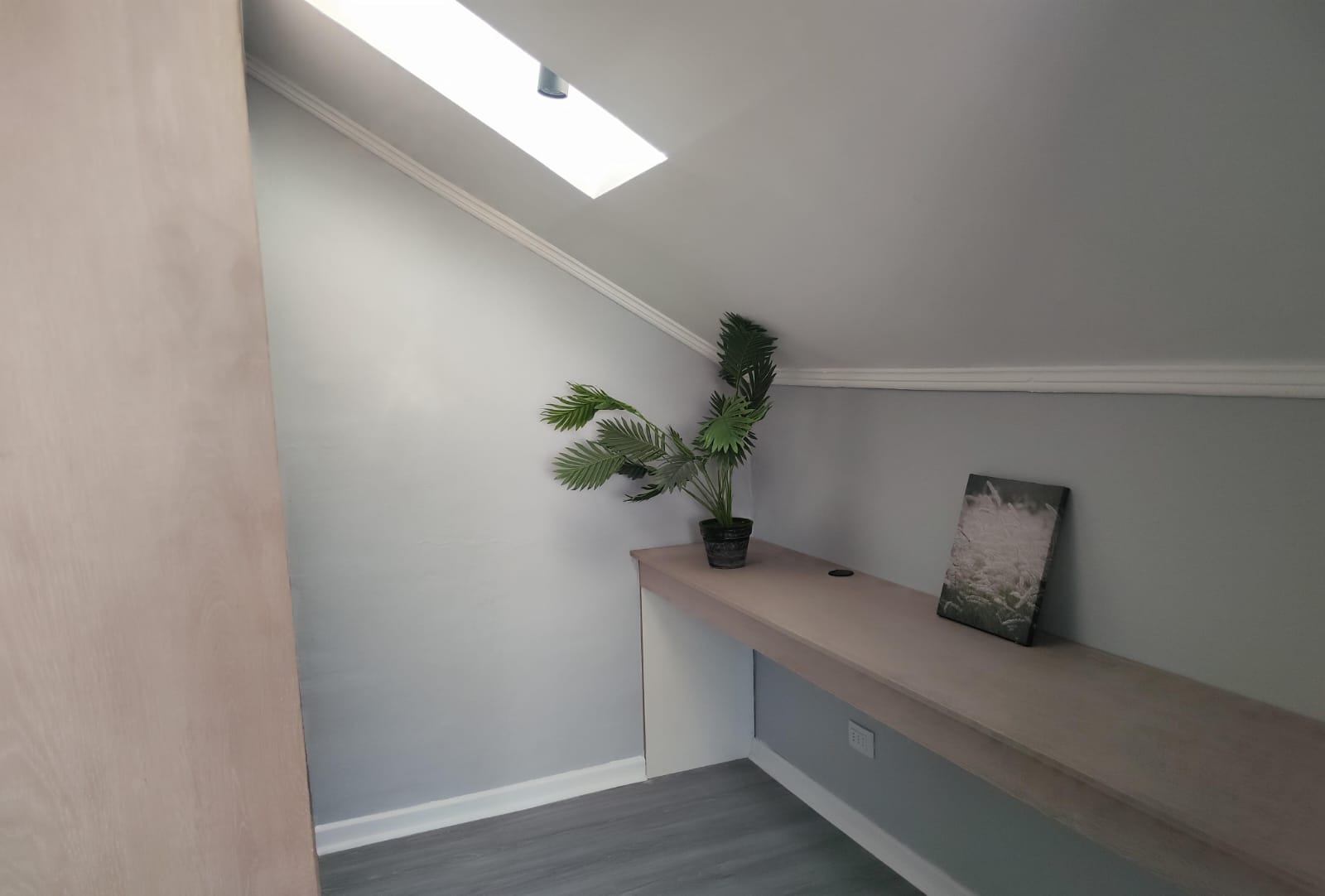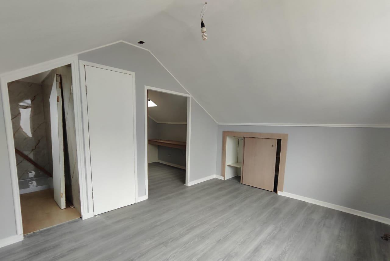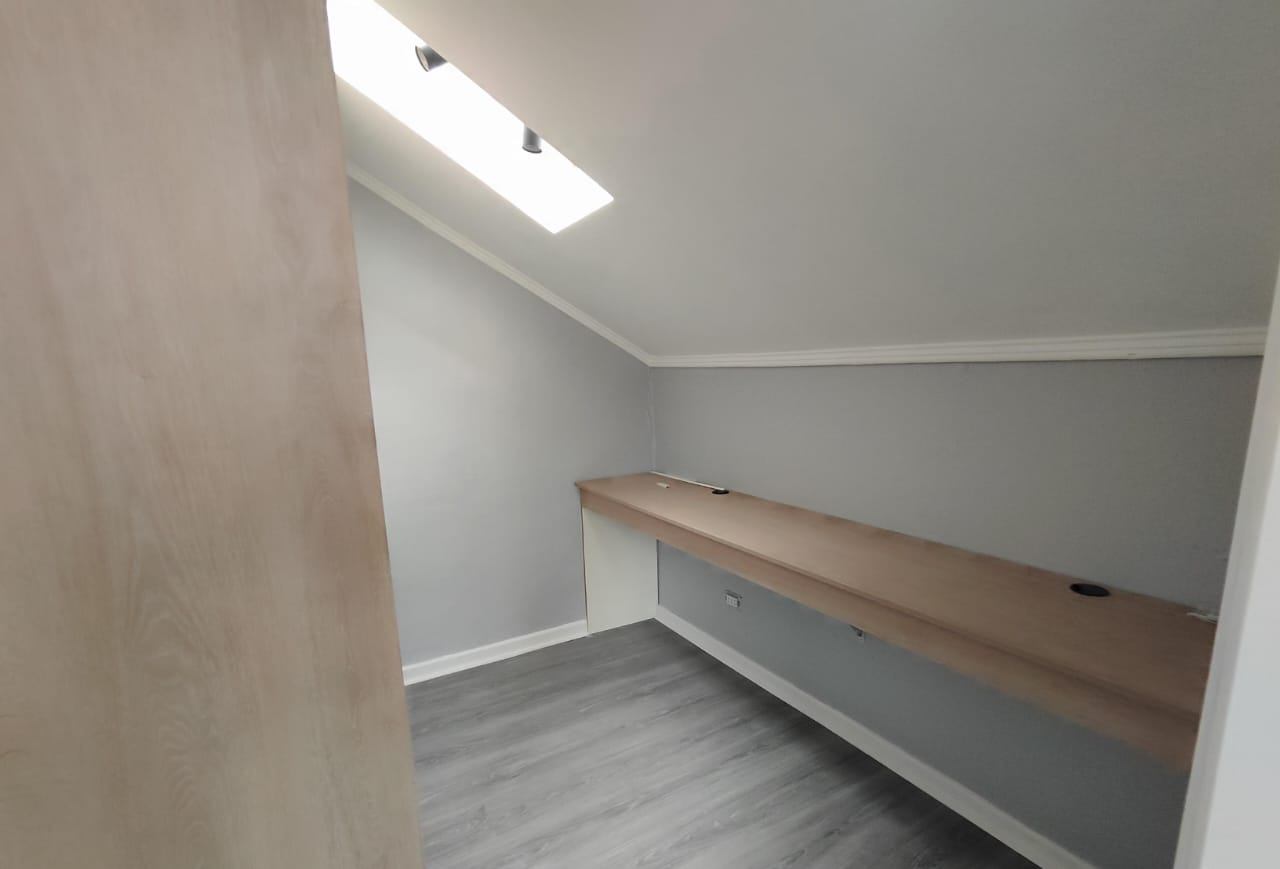 El segundo piso alberga otra habitación en suite, que incluye un amplio escritorio y un walking closet, brindando un espacio ideal para el trabajo o estudio. La casa dispone de un amplio jardín, donde se puede instalar una piscina o un quincho, además de un área que permite la creación de una bodega o logia.