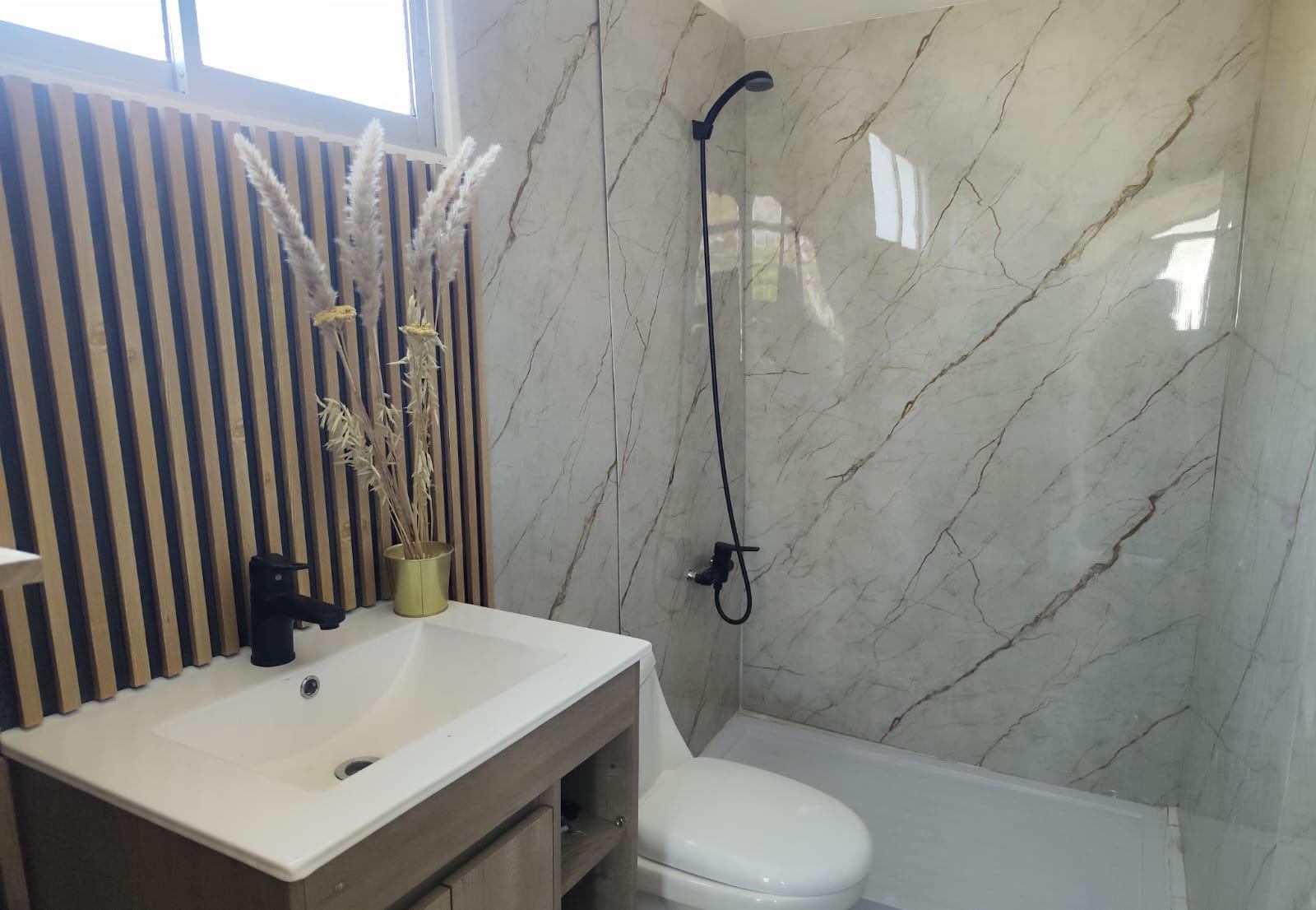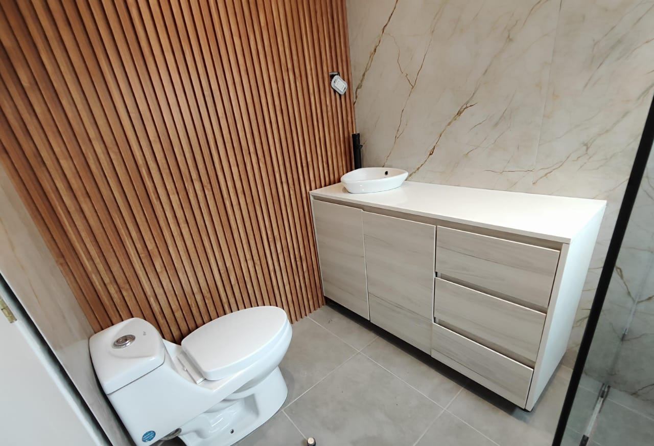 La casa se desarrolla en 2 pisos, ofreciendo un ambiente acogedor y moderno. En el primer piso, encontrarás un living y comedor separados, así como una amplia cocina americana completamente nueva, equipada con horno, campana y encimera. También se sitúan en este nivel una habitación en suite con closet y otra habitación con salida a la terraza, perfecta para disfrutar del espacio exterior.