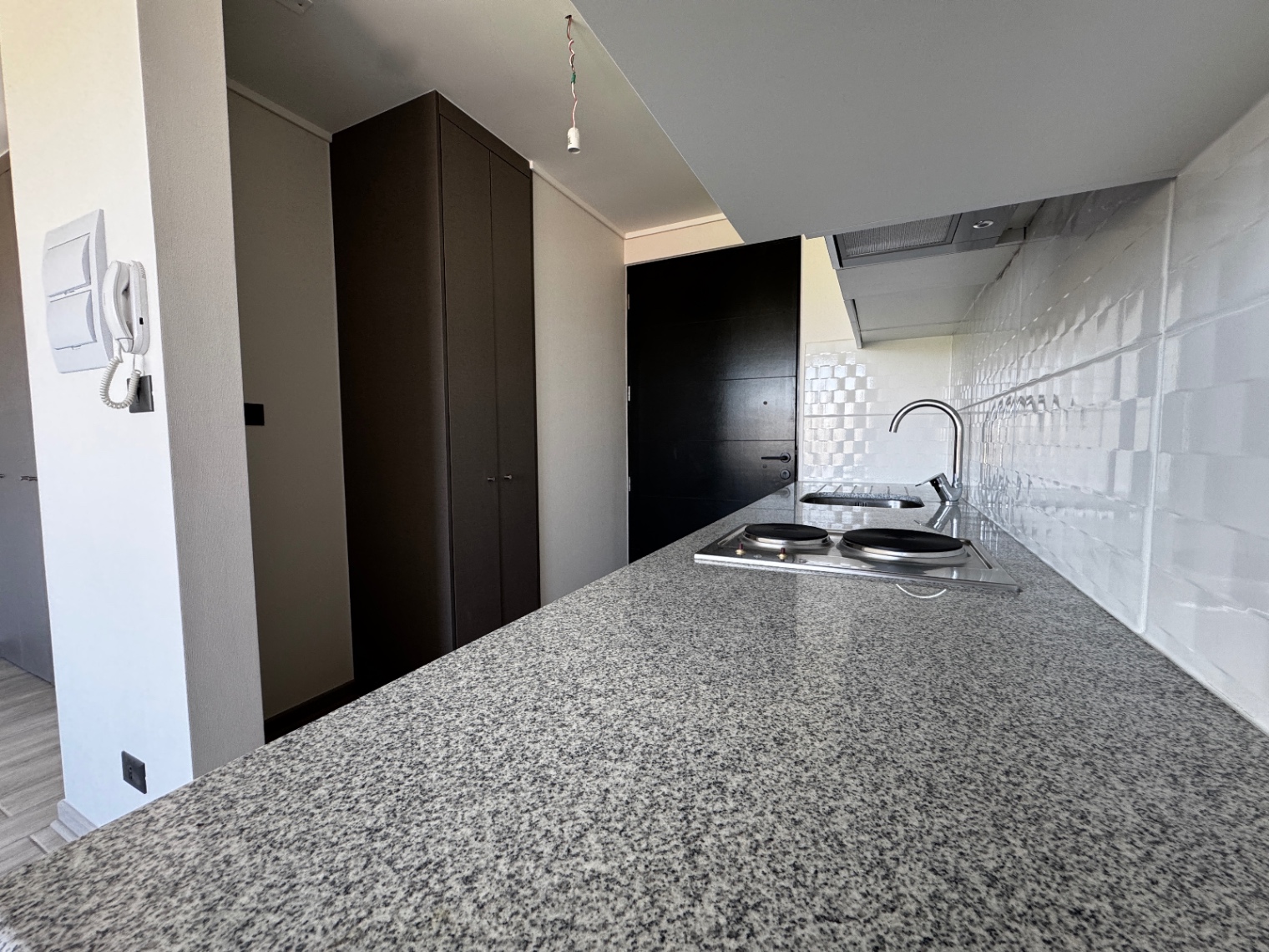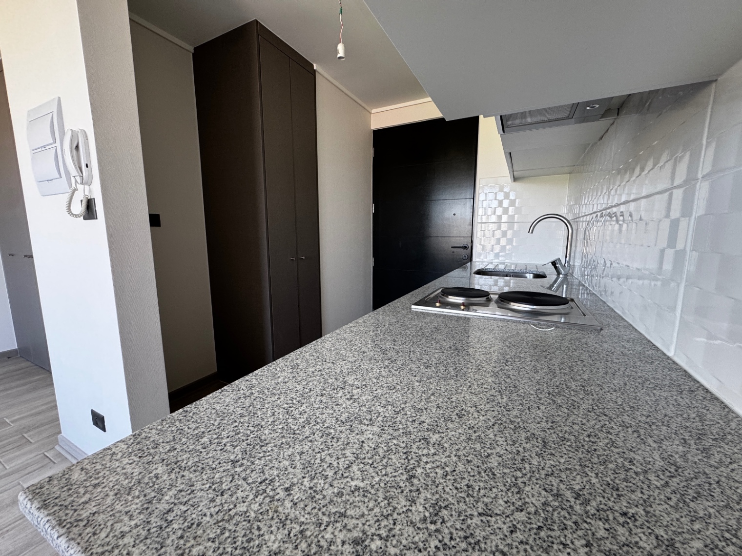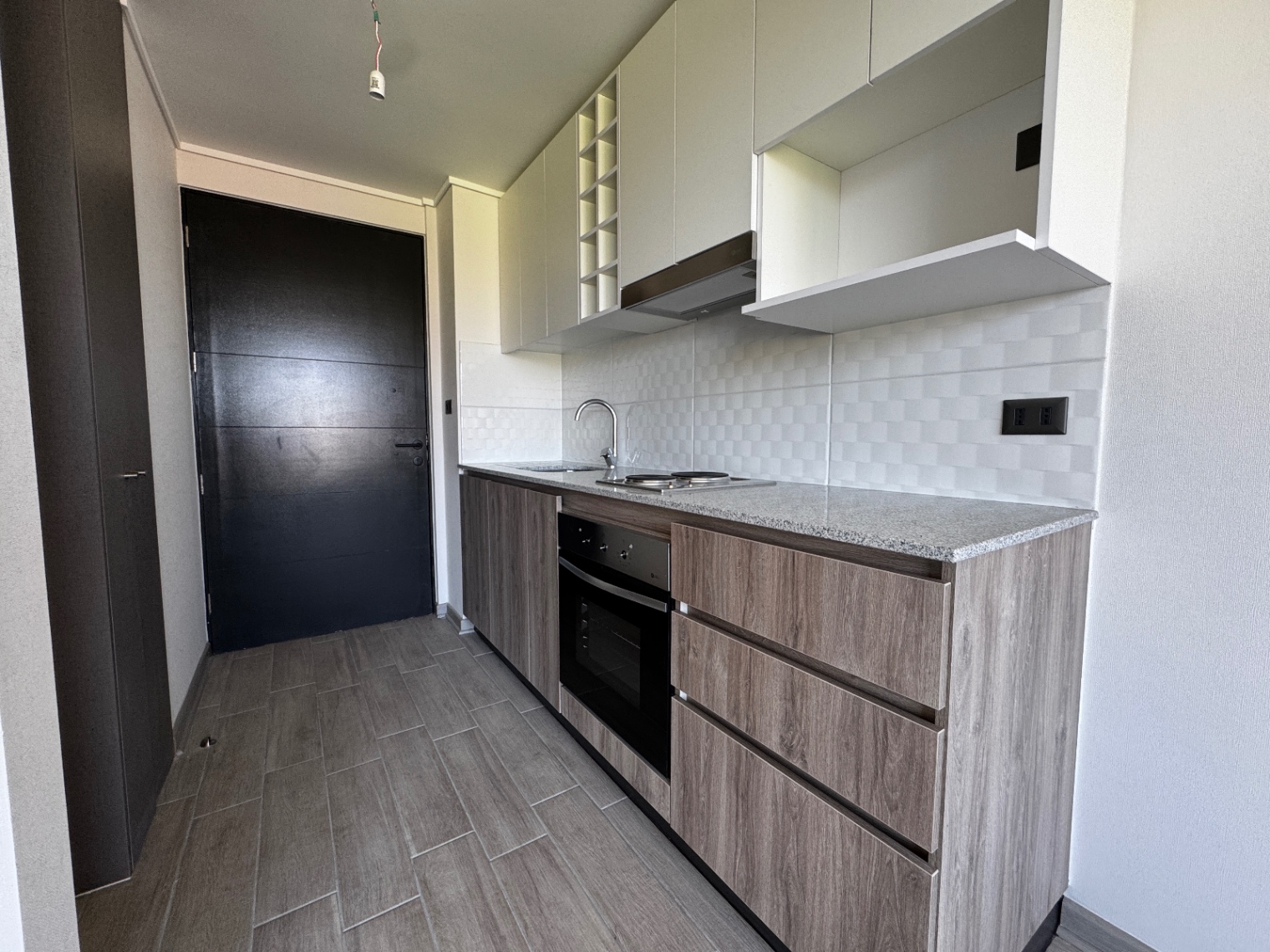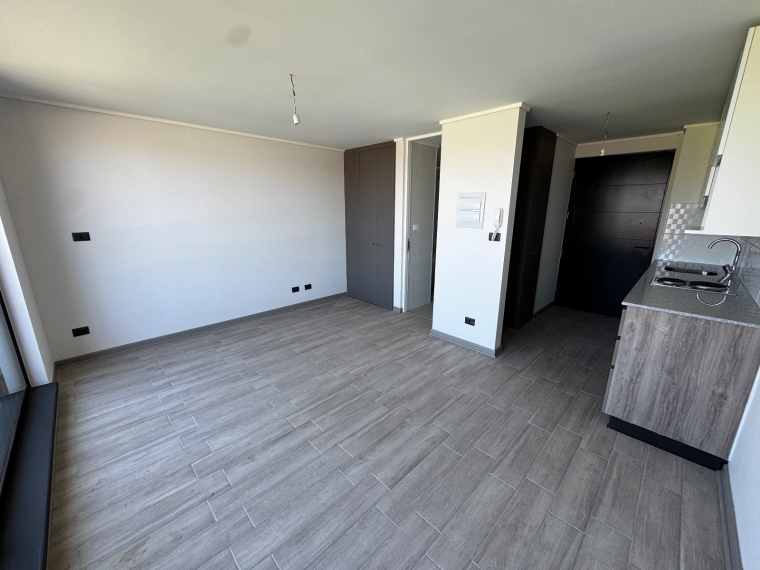 | Piso porcelanato | Ventanas de termopanel negro | Cubierta granito |