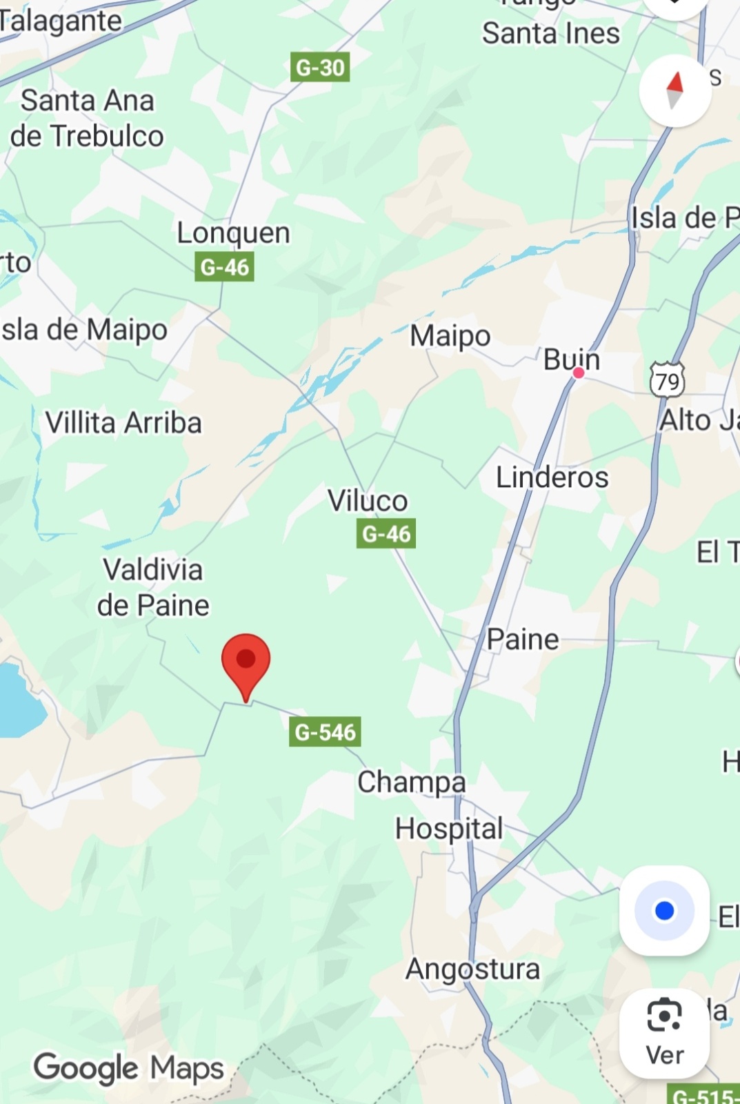 Referencia Ruta 546 Camino principal Camino Laguna de Aculeo.