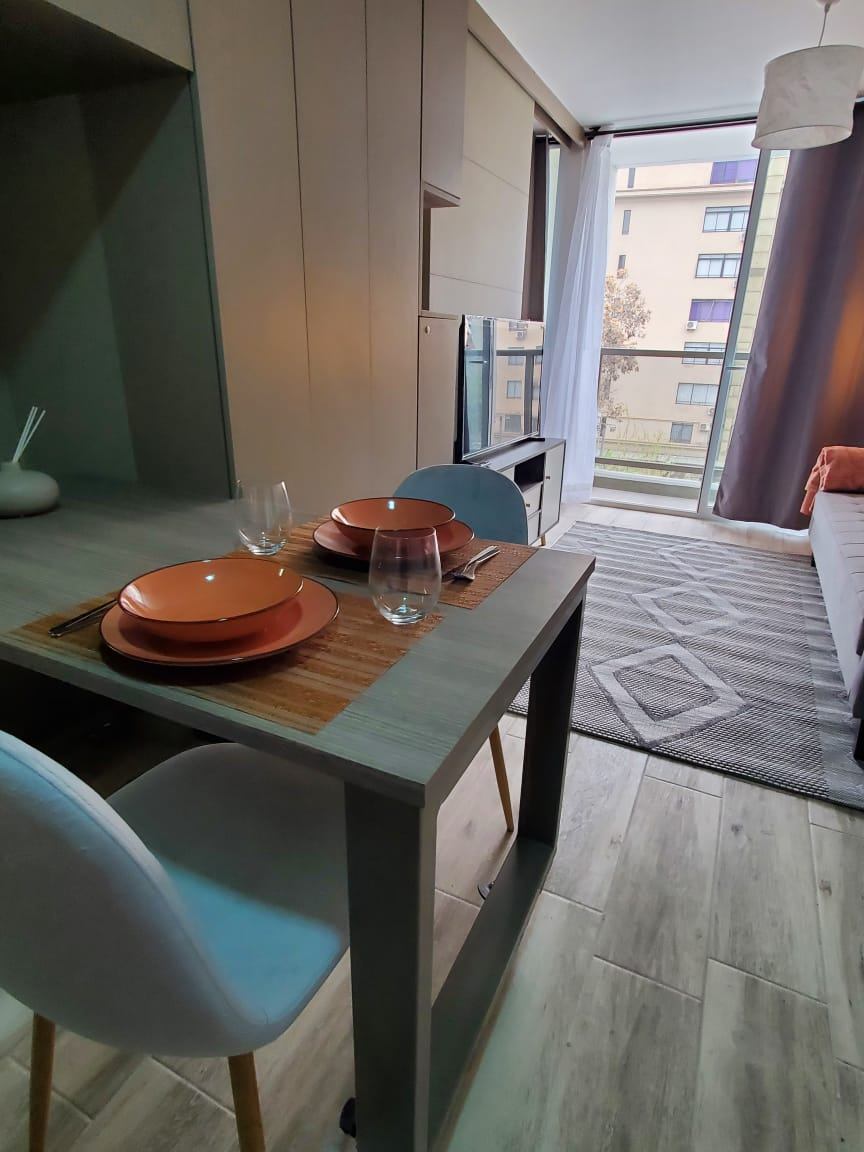 Ubicado en el corazón de Santiago, en la calle Cóndor, este moderno departamento de un dormitorio y un baño es la opción perfecta para quienes buscan comodidad y estilo en una de las zonas más vibrantes de la ciudad. Con una superficie total de 33 m², el inmueble está completamente amoblado y equipado, listo para recibir a sus nuevos inquilinos. La ubicación privilegiada permite un fácil acceso al metro, restaurantes, cines, universidades y centros comerciales, convirtiéndolo en un lugar ideal tanto para profesionales como para estudiantes.