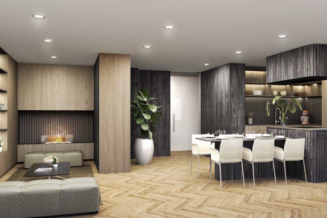 Piso vinílico en interior; cerámico en terraza