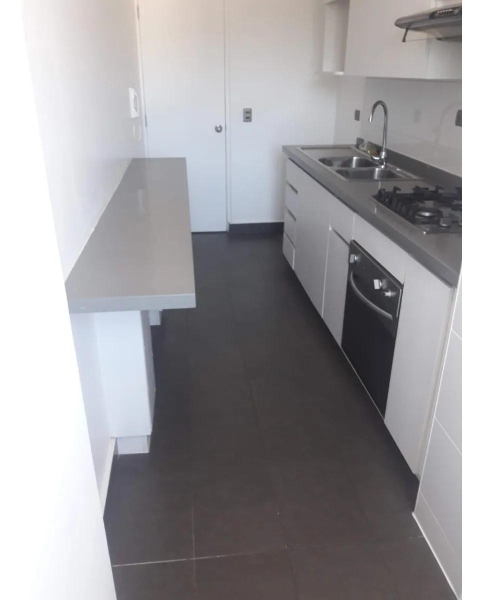 Cocina independiente, amplia y completamente amoblada con cubiertas de granito, además de contar con logia.