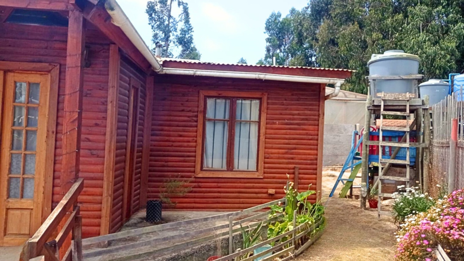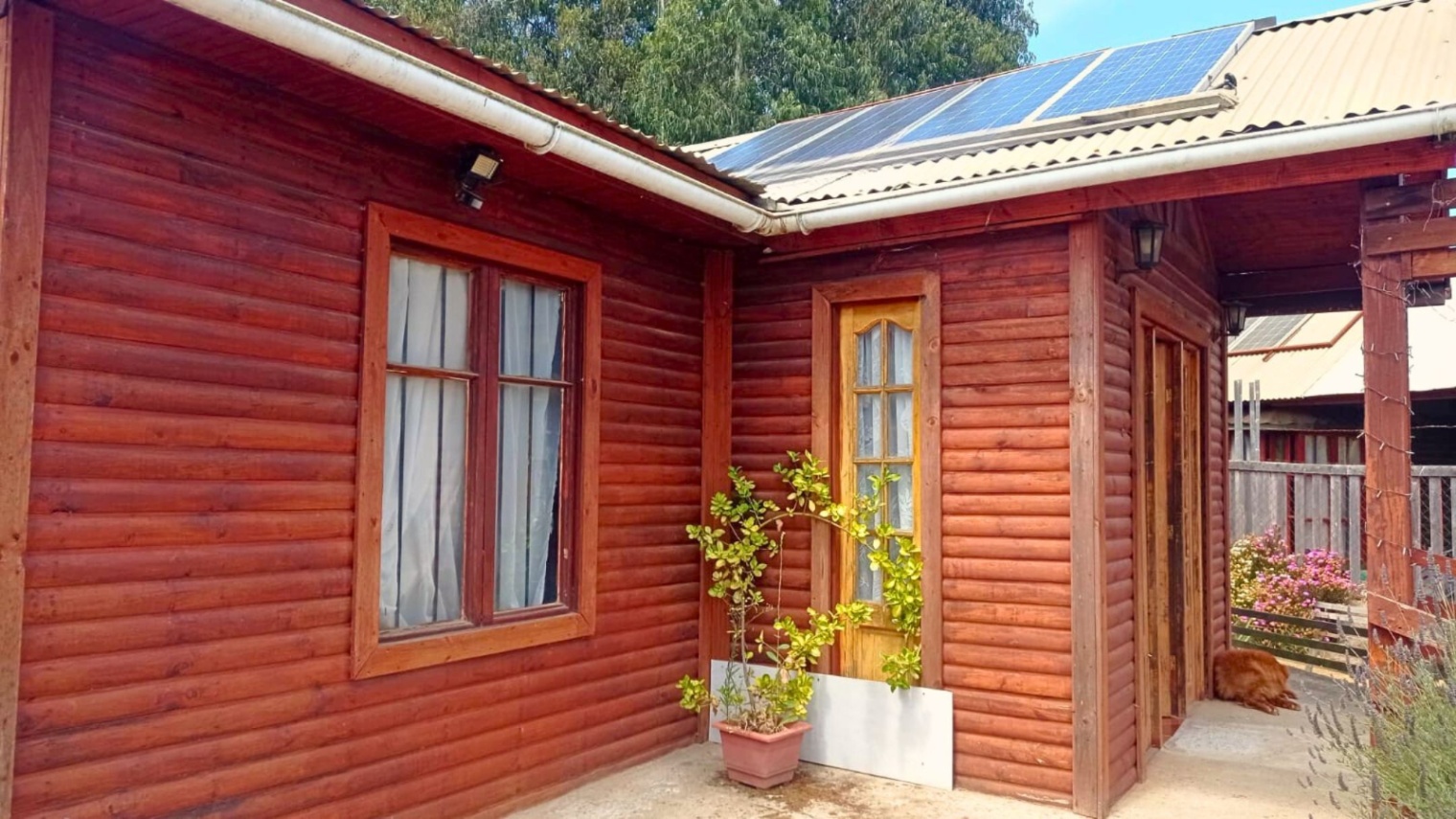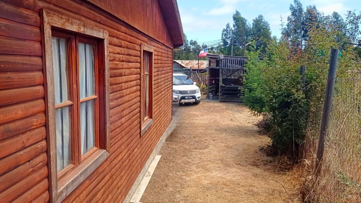 En el exterior destaca un quincho de 4 x 4 metros, equipado con parrilla central, plancha para cocinar y horno lateral con bandeja enlozada. La propiedad funciona con energía solar, el agua se compra por metro cúbico y cuenta con sistema de fosa y drenaje para alcantarillado.