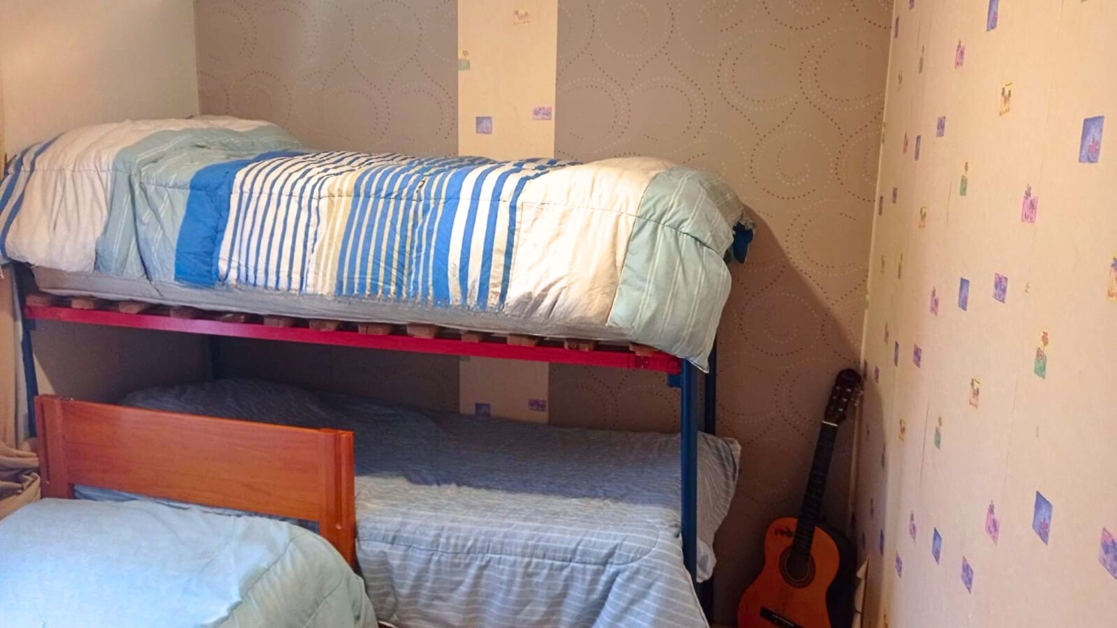 Cuenta con 4 dormitorios y 2 baños, totalmente amoblada y equipada, con un total de 7 camas: dos dormitorios matrimoniales con camas de 2 plazas, un dormitorio con camarote y una cama adicional, y un cuarto dormitorio con dos camas. Todas las habitaciones incluyen ropa de cama.