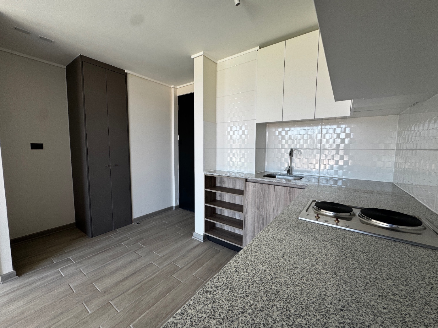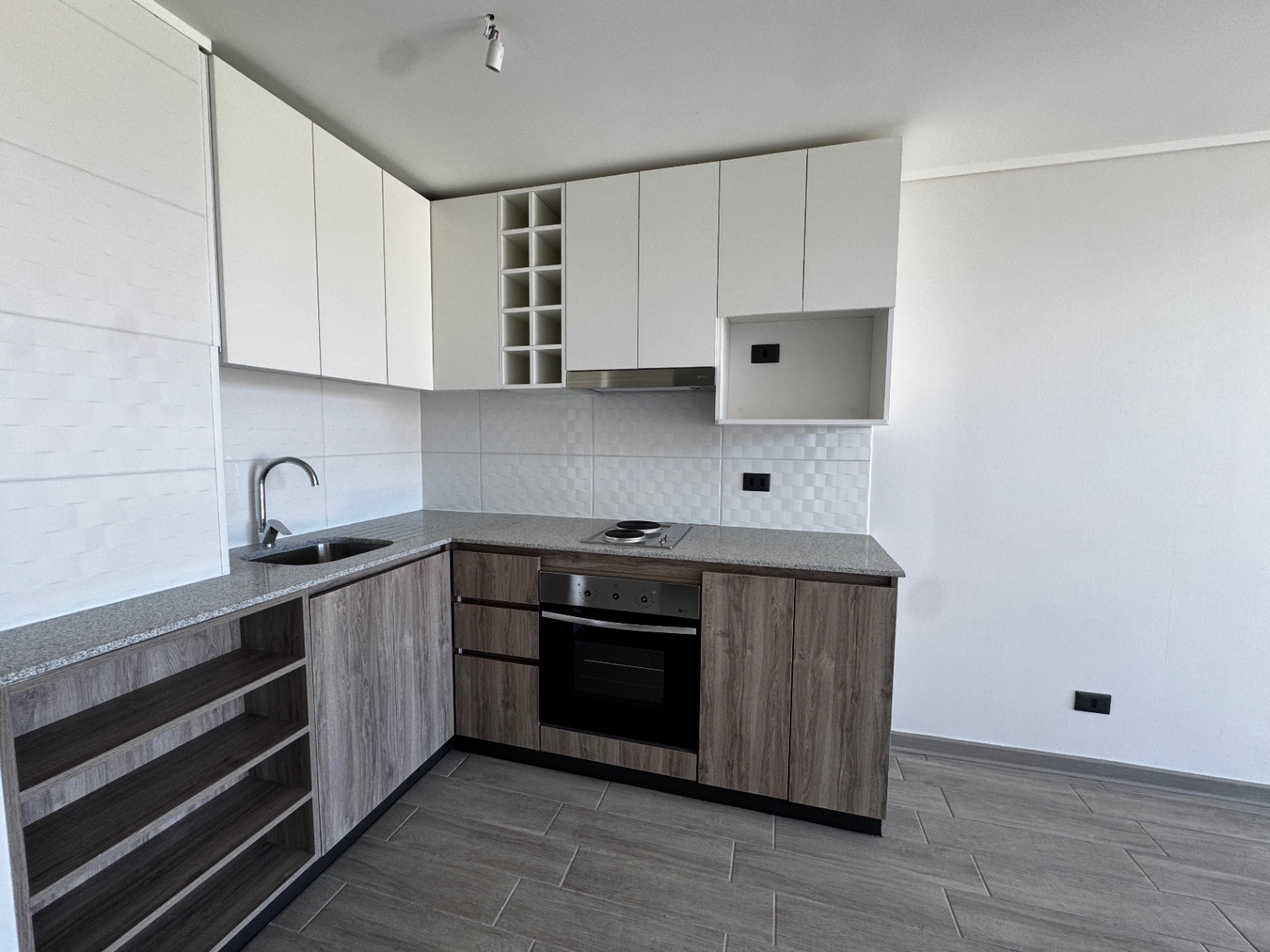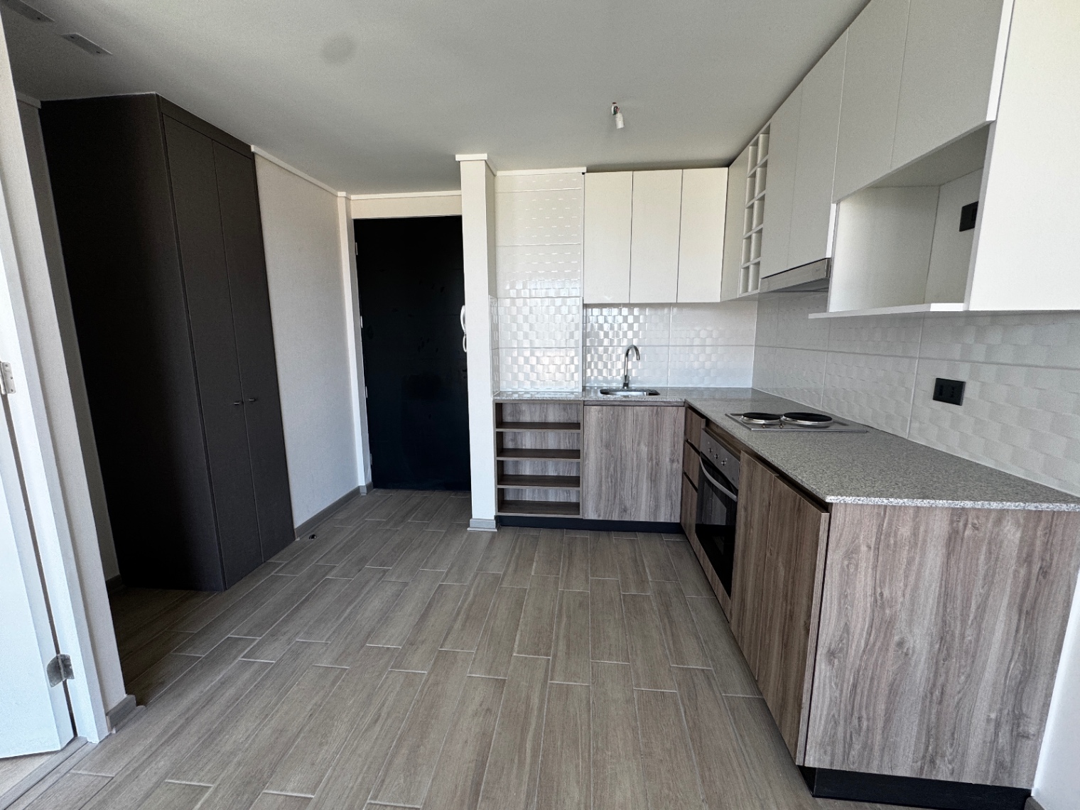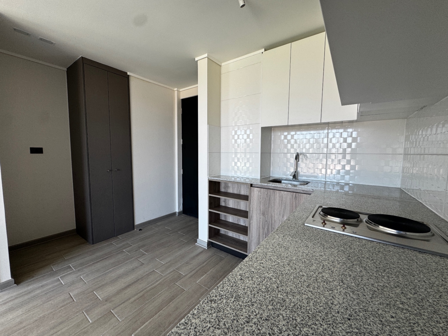 | Piso porcelanato | Ventanas de termopanel negro | Cubierta granito |
