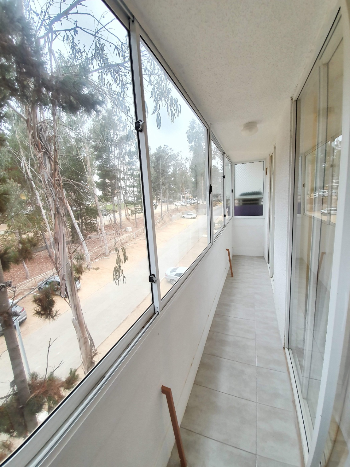 – Terraza cerrada con ventanales y cerámicos en pisos.
