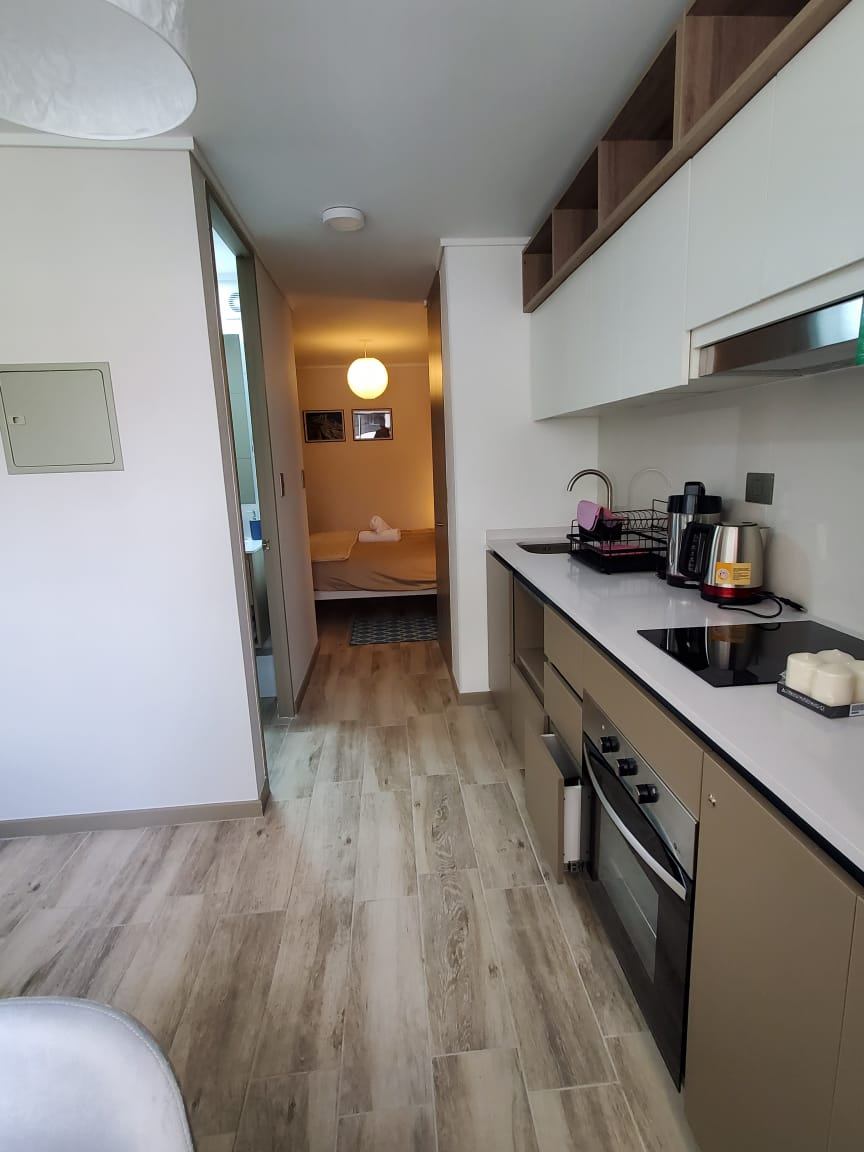 Descubre este encantador estudio en arriendo, ubicado en el prestigioso sector de Parque Almagro, Santiago. Con una superficie total de 27 m², este espacio está completamente equipado y diseñado para ofrecer la máxima comodidad. Su estratégica ubicación te sitúa a pasos de importantes universidades y centros comerciales, además de contar con acceso inmediato a la estación de metro, facilitando así tu movilidad por la ciudad. El departamento cuenta con un dormitorio, un baño y una cocina funcional, ideal para quienes buscan un hogar práctico y acogedor.