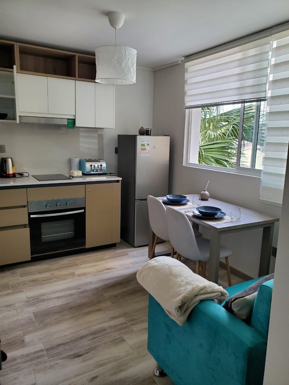 Dentro de las comodidades del condominio, disfrutarás de todas las comodidades de un estudio Full equipado, con TV Full HD, microondas, hervidor eléctrico, refrigerador, y todos los utensilios necesarios, cuenta además con acceso controlado. Además, el edificio ofrece gimnasio, azotea con parrilla y un espacio de coworking, perfectos para complementar tu estilo de vida activo y social. La conserjería asegura una atención constante y el ambiente es amigable para mascotas, brindando la posibilidad de compartir tu hogar con tus animales.
