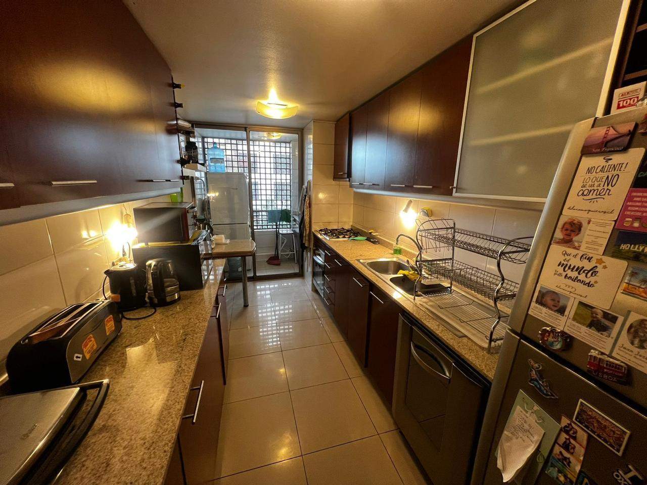 El departamento cuenta con una superficie total de 110 m², de los cuales 110 m² son cubiertos, distribuidos en 3 acogedores dormitorios y 2 baños. La cocina está diseñada para ser funcional y cuenta con conexión para lavarropas, además de un balcón que ofrece un espacio perfecto para relajarse. Entre sus características destacadas, se incluyen 2 estacionamientos cubiertos, 1 bodega, acceso controlado, áreas verdes, gimnasio, piscina, y un salón de usos múltiples, todo dentro de un condominio cerrado que proporciona seguridad y confort.