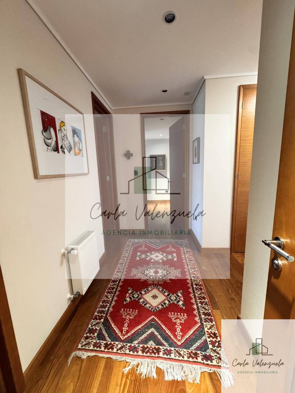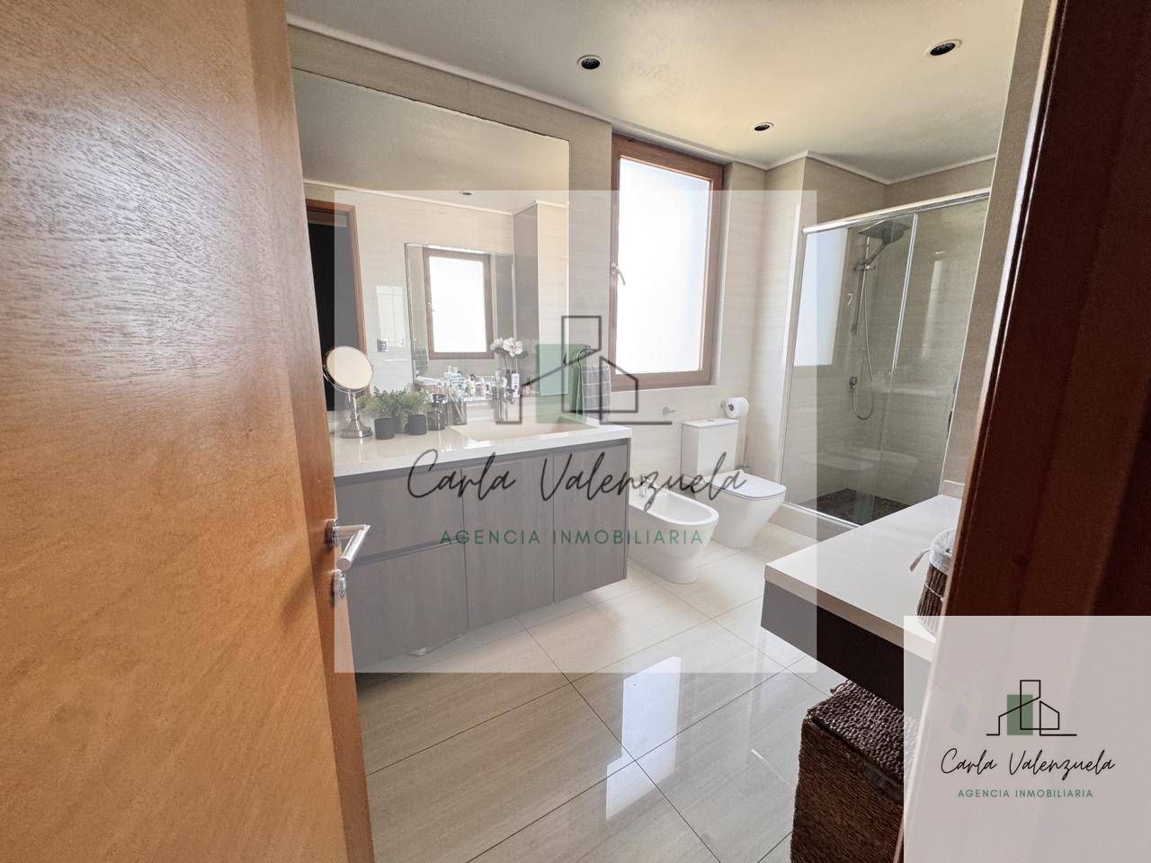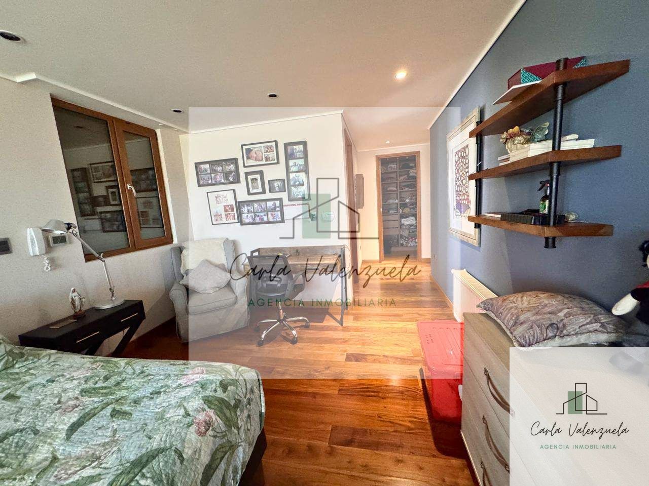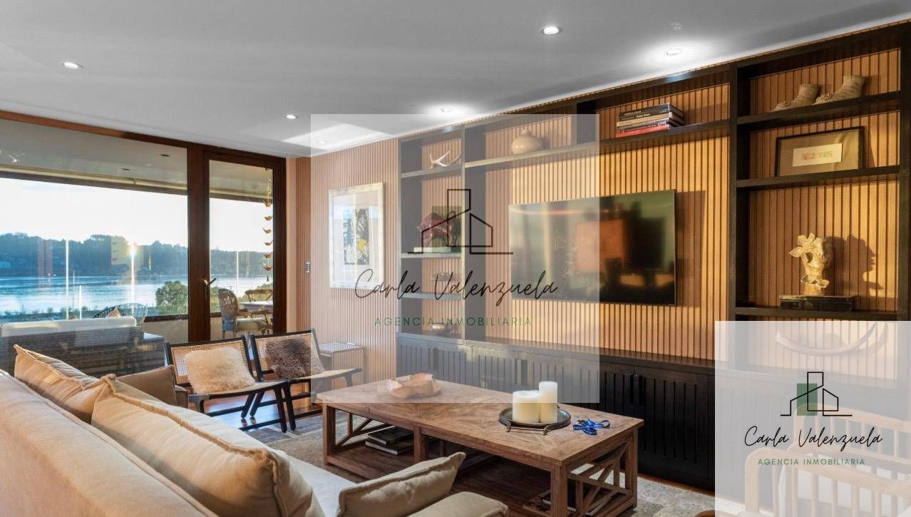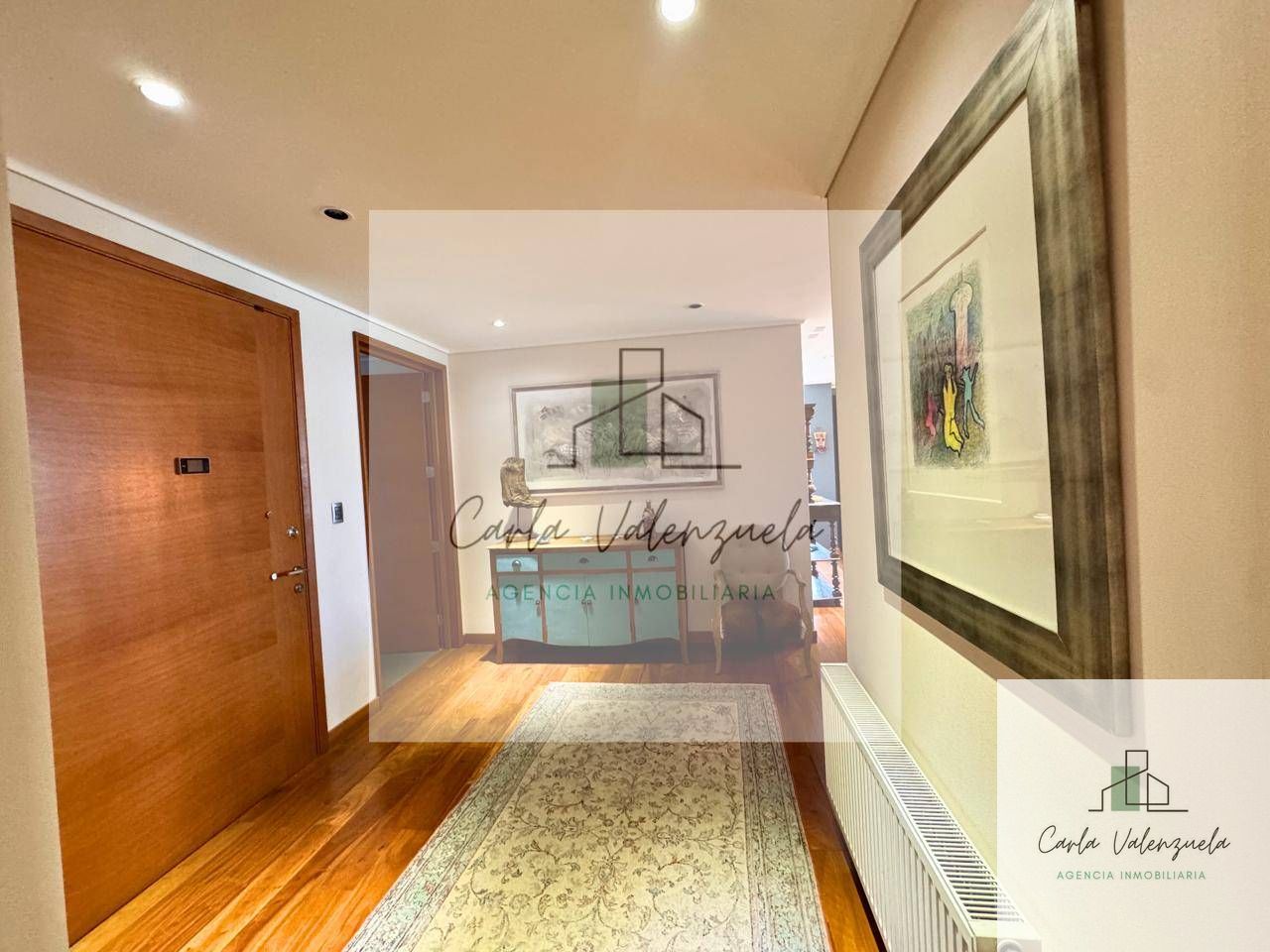 El departamento cuenta con una distribución excepcional que incluye un ascensor privado con acceso directo al recibidor, un amplio living-comedor con salida a la terraza, una sala de estar independiente, y un dormitorio principal en suite con walk-in closet y salida a la terraza. Además, dispone de dos dormitorios adicionales en suite, un baño de visitas, y una cocina independiente con isla central y cubierta de Silestone. Los acabados son de primera, destacándose la calefacción por radiadores, ventanas termopanel, y pisos de madera natural en las áreas principales. Incluye también 2 estacionamientos techados y 1 bodega.