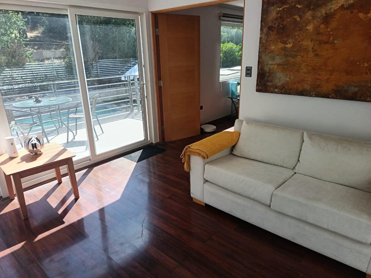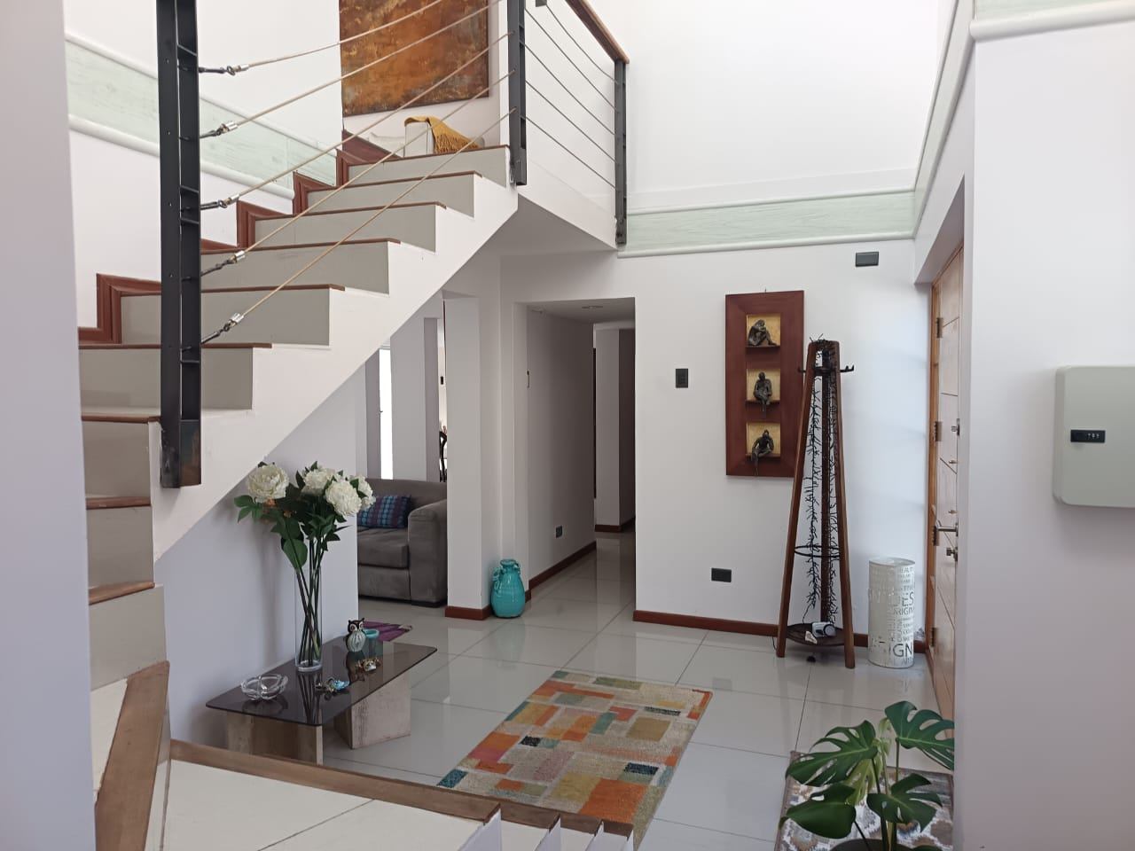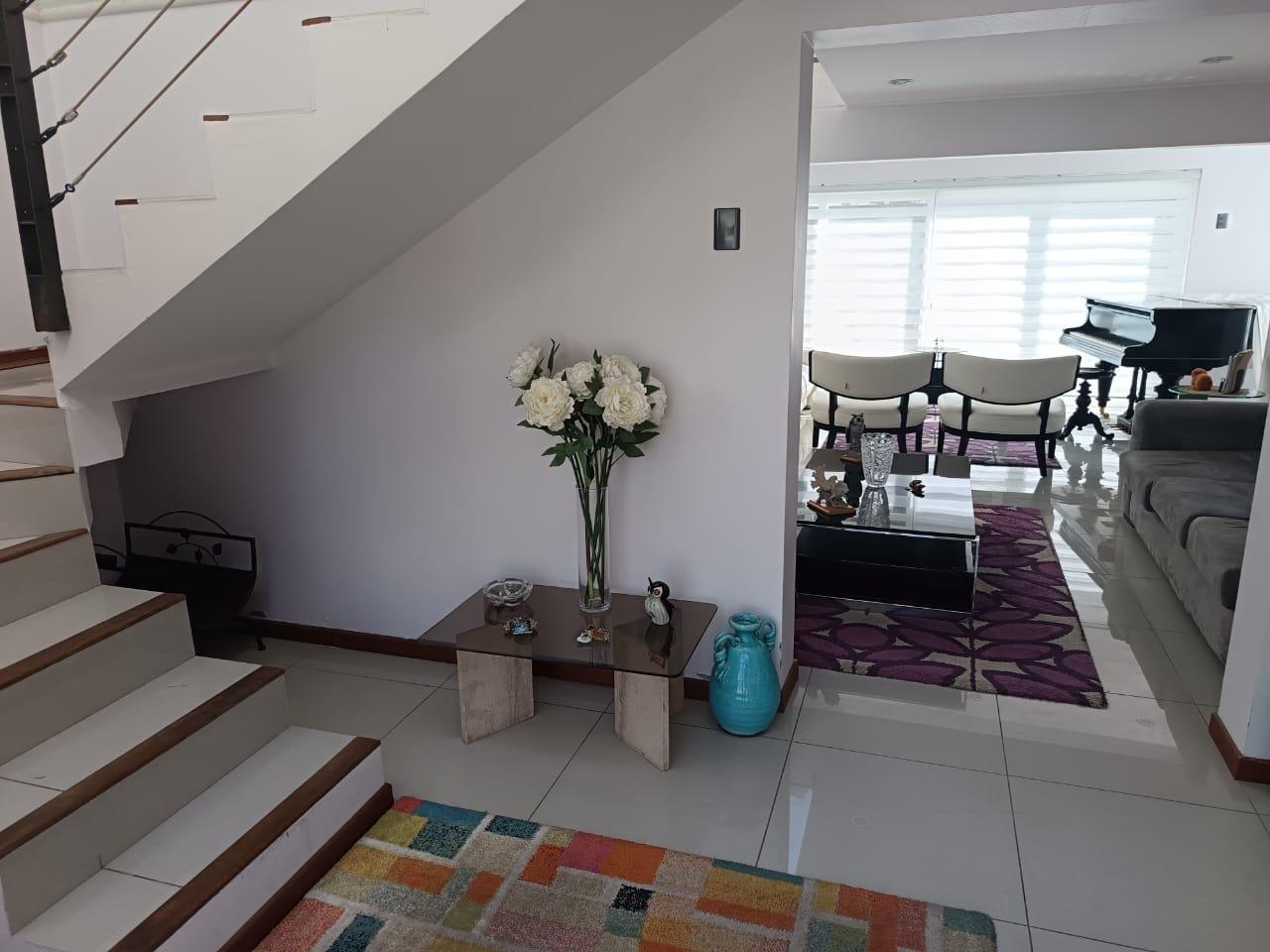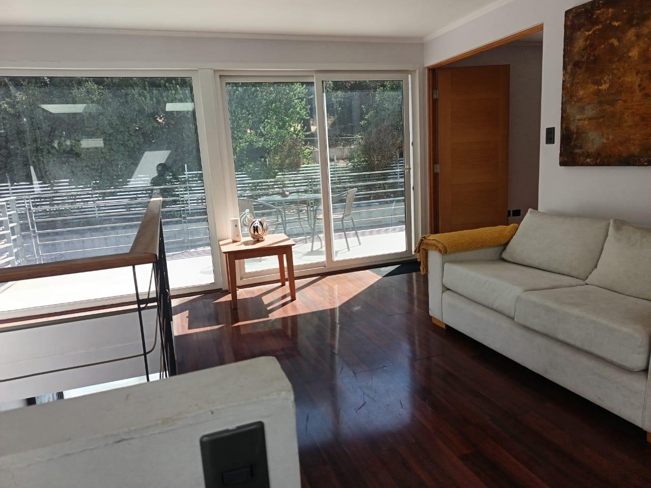 La casa destaca por su gran piscina de 10 m por 2,5 m, un quincho de 50 m², sauna y jacuzzi, perfectos para disfrutar de momentos de relajación y entretenimiento. Dispone de dos salas de estar, un living y comedor separados, así como una amplia cocina con isla y comedor de diario. Las ventanas termo panel garantizan un excelente aislamiento térmico, mientras que la calefacción por losa radiante en el primer piso, complementada con chimenea y bosca, asegura un ambiente cálido y acogedor en todo momento. Los acabados de alta calidad incluyen pisos de porcelanato, riego automático en el jardín y antejardín, y amplios espacios que brindan comodidad y funcionalidad a cada rincón del hogar.