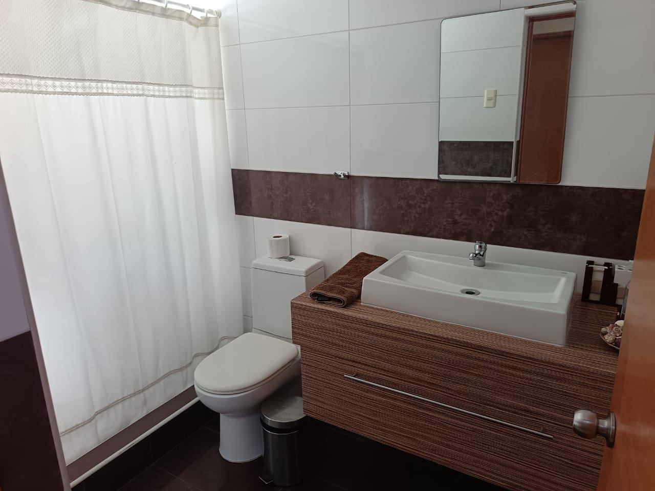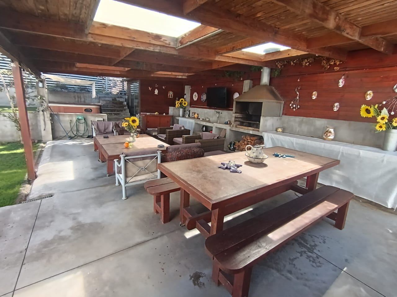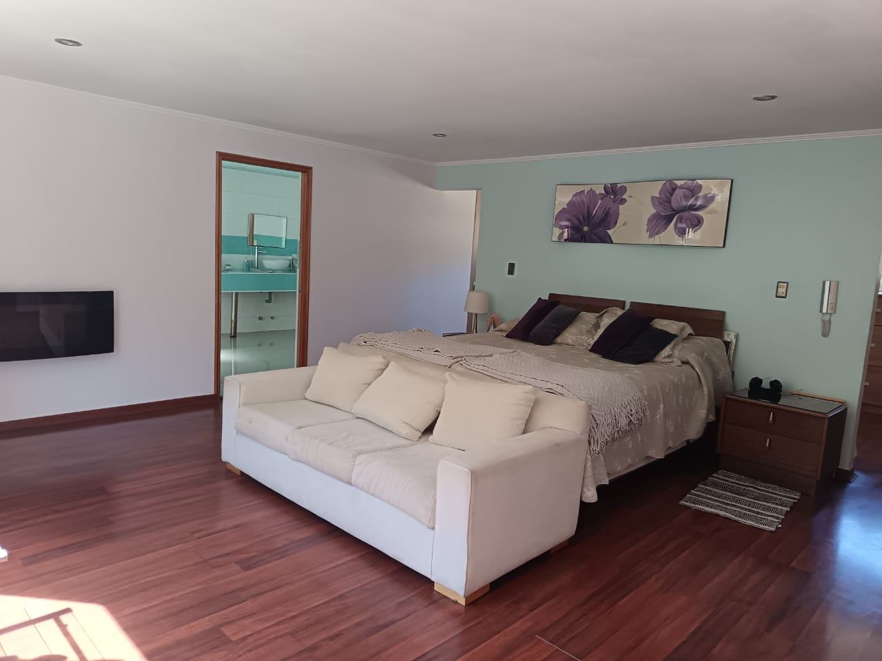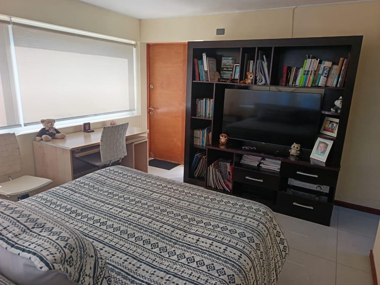 La casa destaca por su gran piscina de 10 m por 2,5 m, un quincho de 50 m², sauna y jacuzzi, perfectos para disfrutar de momentos de relajación y entretenimiento. Dispone de dos salas de estar, un living y comedor separados, así como una amplia cocina con isla y comedor de diario. Las ventanas termo panel garantizan un excelente aislamiento térmico, mientras que la calefacción por losa radiante en el primer piso, complementada con chimenea y bosca, asegura un ambiente cálido y acogedor en todo momento. Los acabados de alta calidad incluyen pisos de porcelanato, riego automático en el jardín y antejardín, y amplios espacios que brindan comodidad y funcionalidad a cada rincón del hogar.