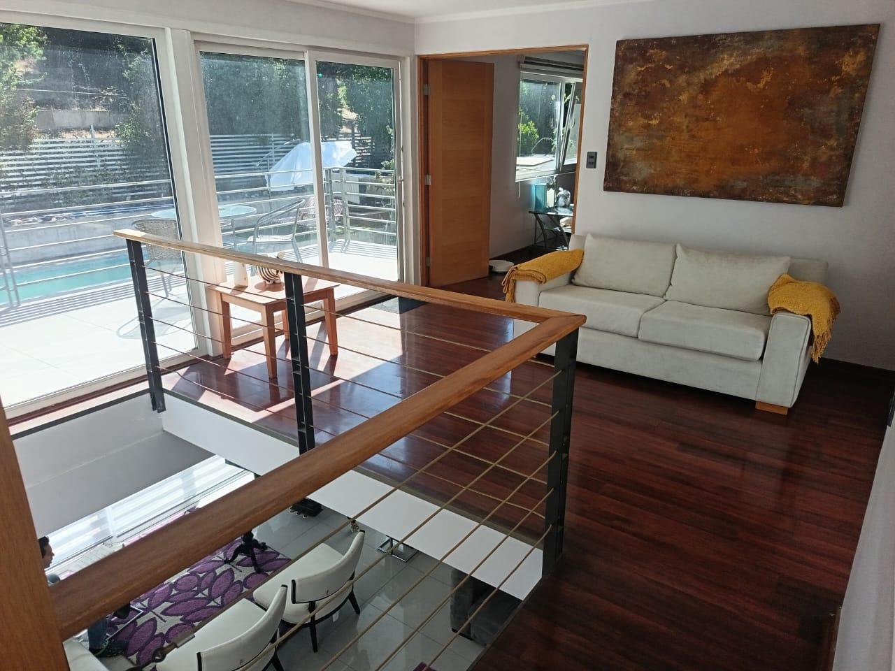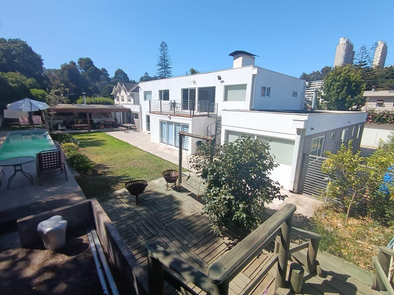 Espectacular casa en venta de dos pisos en el exclusivo sector de Reñaca, Viña del Mar, a solo pasos de supermercados, restaurantes, el prestigioso colegio Mackay, la Universidad de Valparaíso y el Club Español de Reñaca. Esta propiedad se encuentra a minutos de la playa, lo que la convierte en una opción ideal para disfrutar del estilo de vida costero. Esta casa cuenta con 5 dormitorios, de los cuales 2 son en suite, y además cuentan con amplios walking closet. Incluye también un dormitorio de servicio con baño, un baño de visita y un baño adicional con ducha en el sector de la piscina.