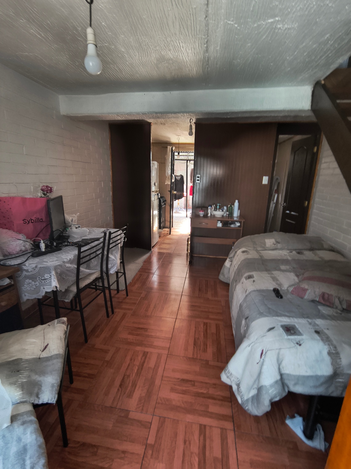 La casa cuenta con entrada para un auto, living comedor, cocina, baño, patio trasero, en segundo piso tiene 2 dormitorios
