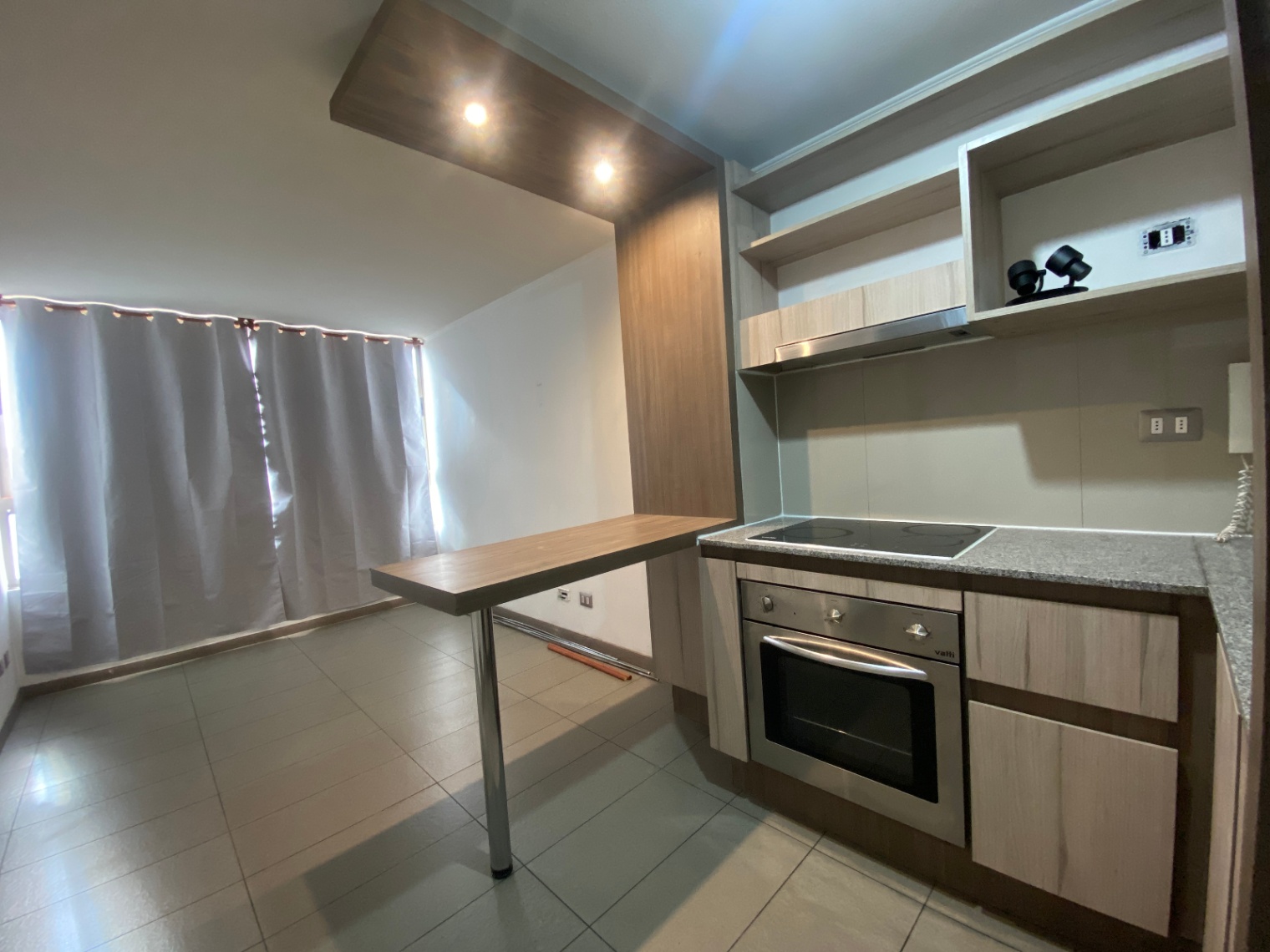 Incluye un dormitorio, un baño y una cocina ful electrica con encimera de vitroceramica de 4 platos, campana y su isla desayunadora.