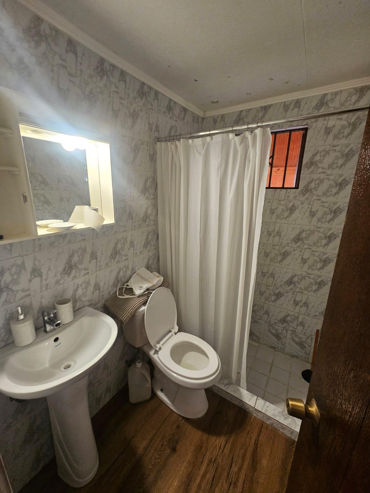 Además, la casa incluye estacionamiento cubierto para dos autos, lo que proporciona una gran comodidad y seguridad. En el exterior, un amplio patio ofrece un espacio ideal para disfrutar de actividades al aire libre o crear un jardín personal. La propiedad también está equipada con agua corriente y luz eléctrica, garantizando un hogar completamente funcional.
