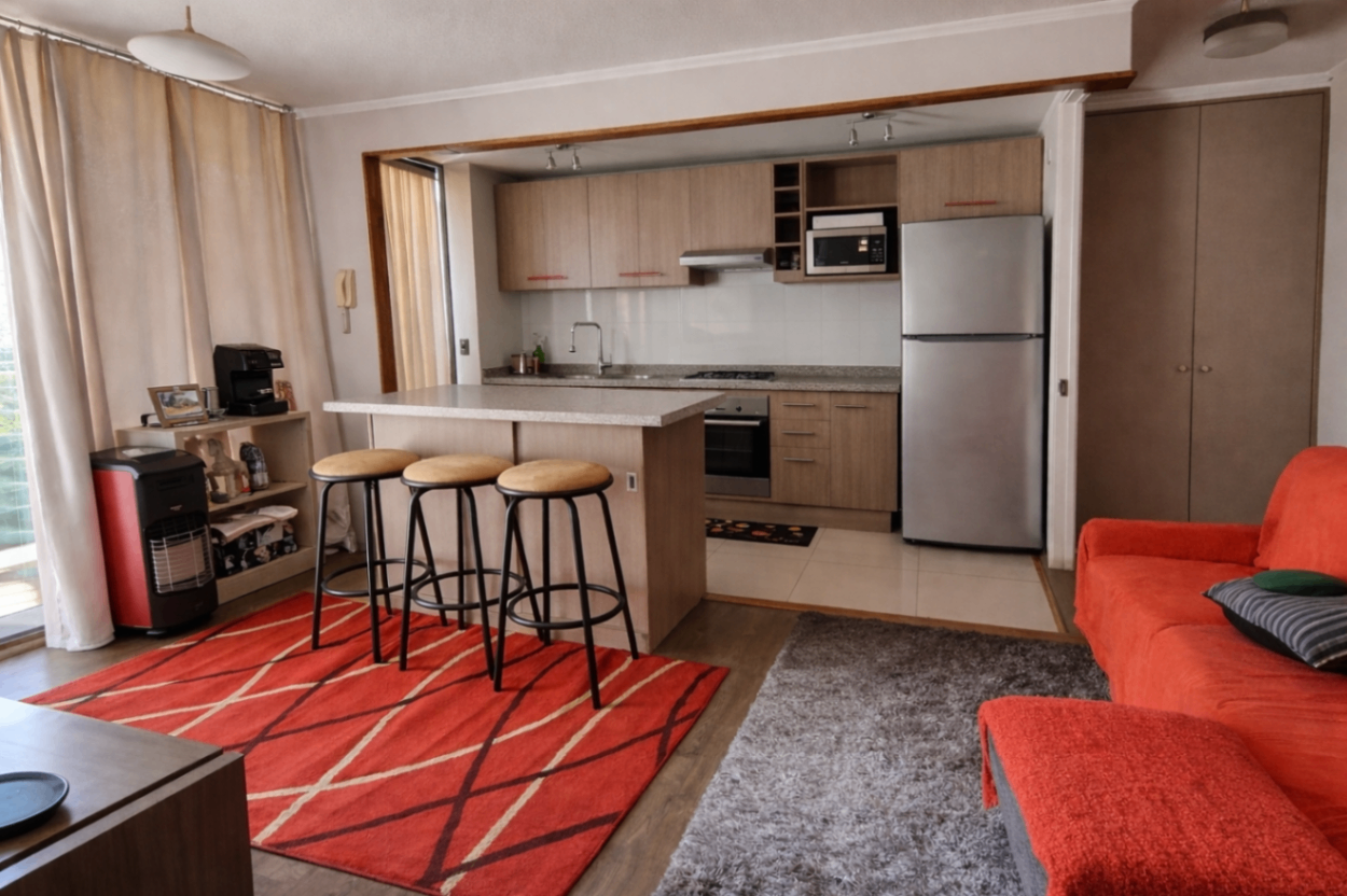 El edificio, que cuenta con solo 7 años de antigüedad, ofrece excelentes espacios comunes, como un bello parque, piscina, salón de eventos y un gimnasio en el mismo piso del departamento. La conserjería de doble altura brinda una entrada luminosa y acogedora. En el subsuelo, dispone de un estacionamiento propio y bodega ligada, además de espacios de reciclaje, bicicleteros y estacionamientos de visita. La propiedad tiene una orientación norte, lo que asegura una excelente iluminación natural, y permite mascotas, garantizando que todos los miembros de la familia se sientan en casa. Con gastos comunes de CL$70.000, este departamento es una opción inmejorable para disfrutar de un estilo de vida moderno y práctico.